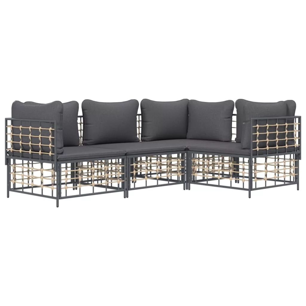 4 részes antracitszürke polyrattan kerti ülőgarnitúra párnákkal