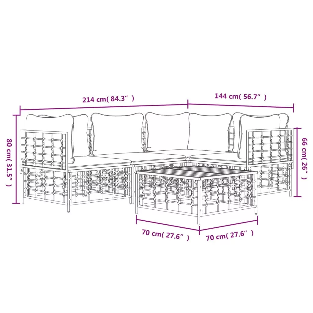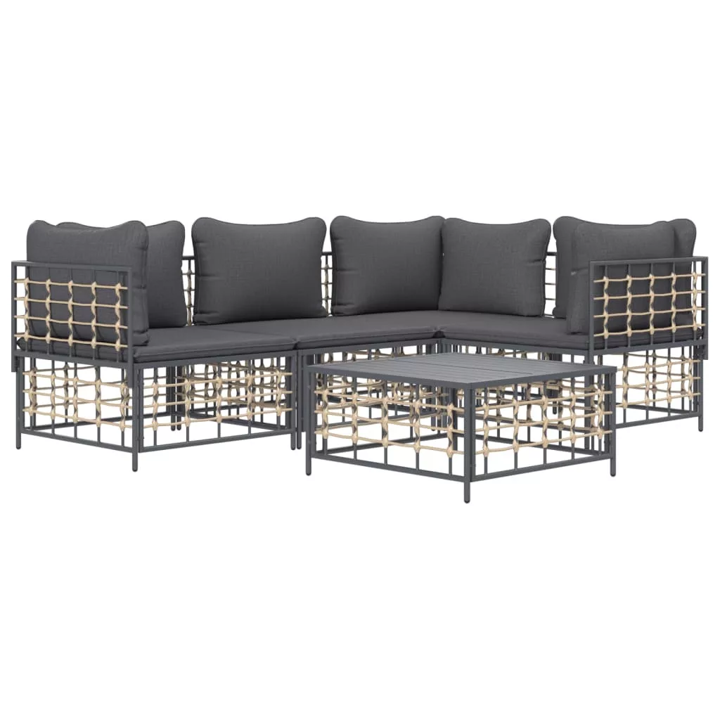 5 részes antracitszürke polyrattan kerti ülőgarnitúra párnákkal
