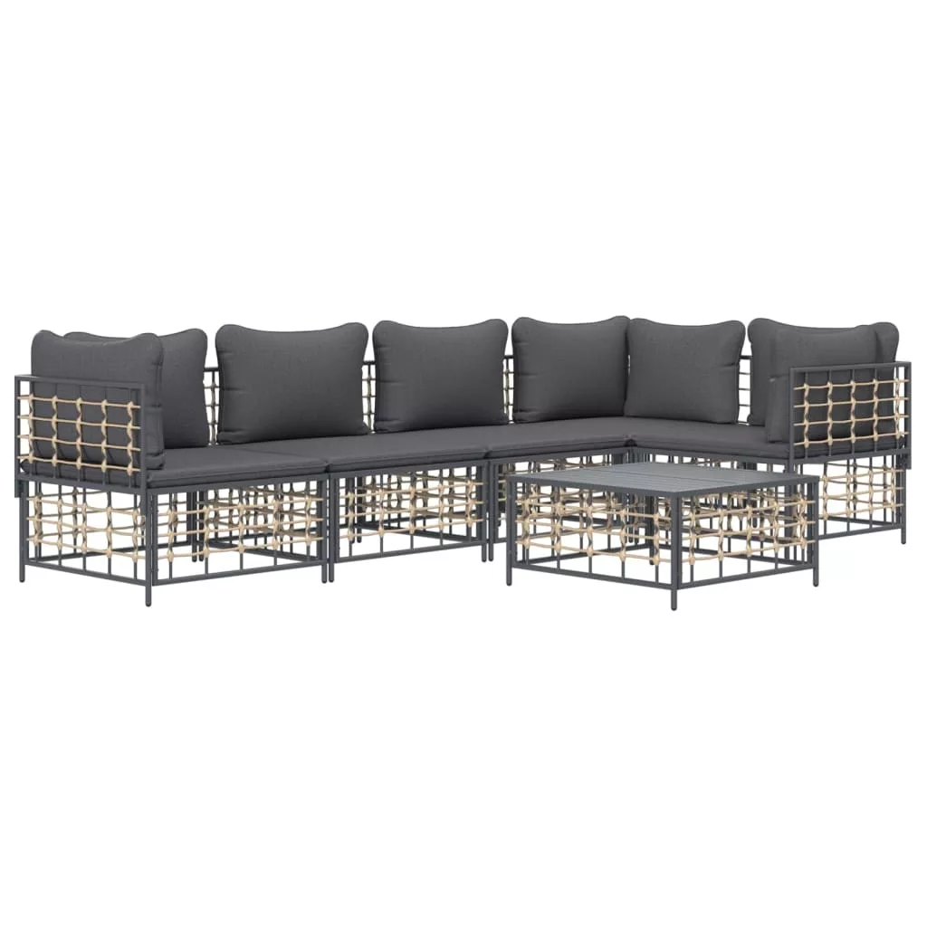 6 részes antracitszürke polyrattan kerti ülőgarnitúra párnákkal