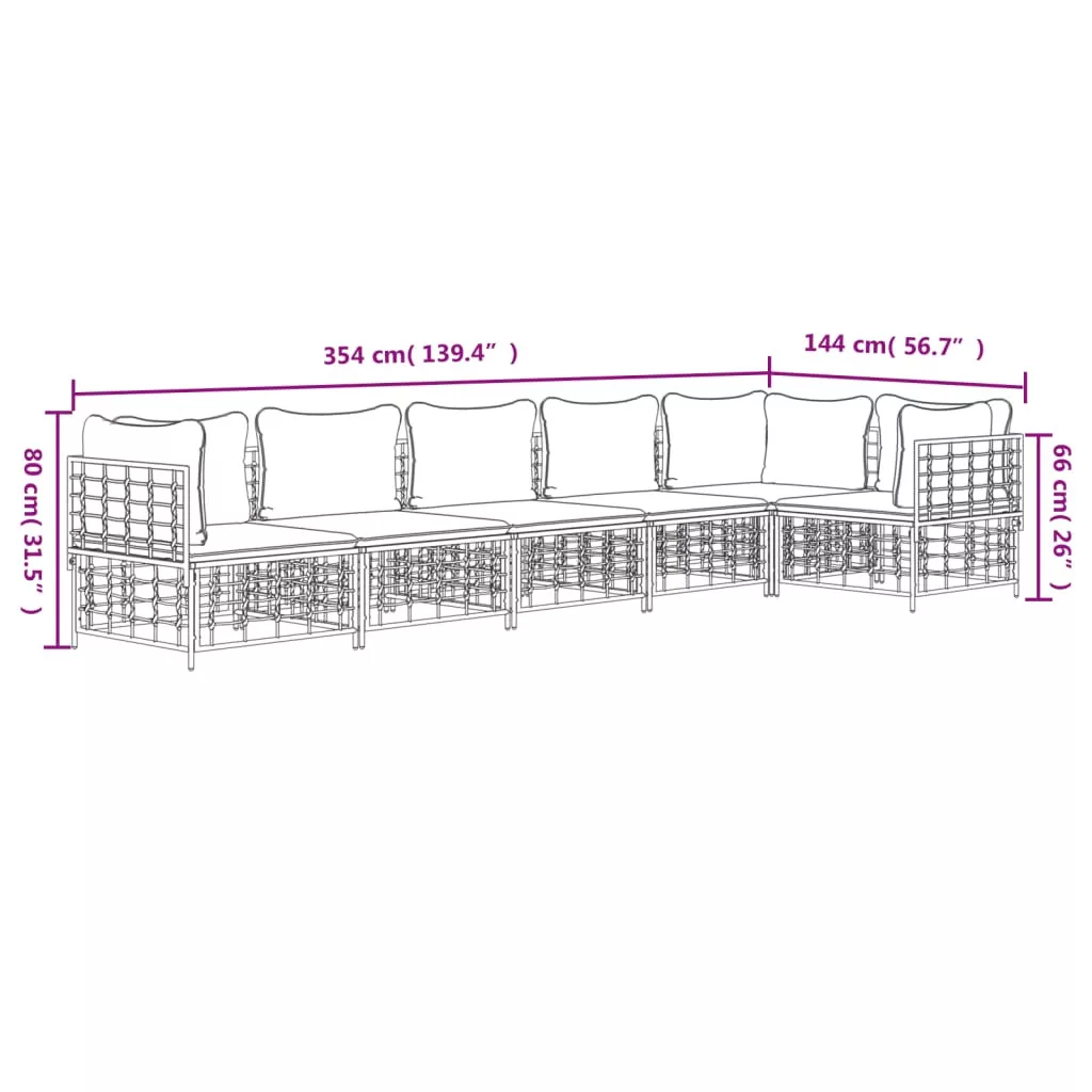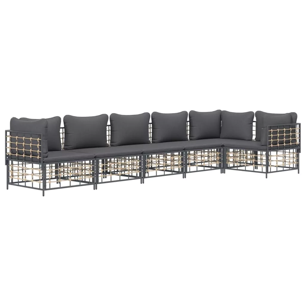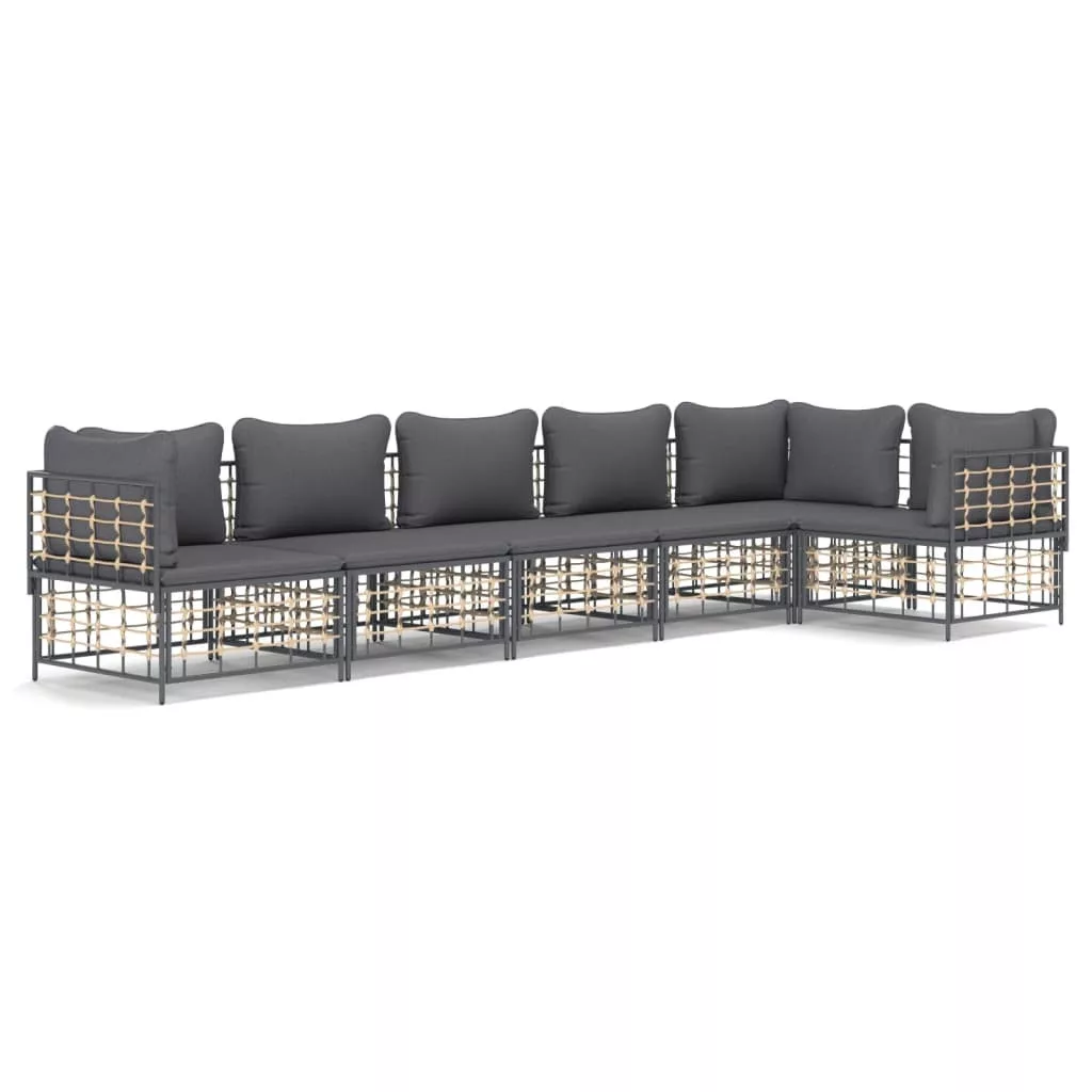 6 részes antracitszürke polyrattan kerti ülőgarnitúra párnákkal