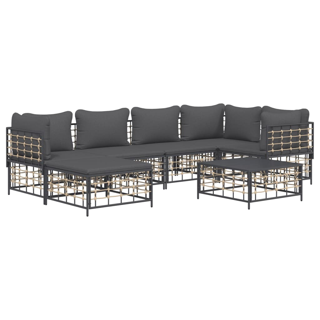 7 részes antracitszürke polyrattan kerti ülőgarnitúra párnákkal