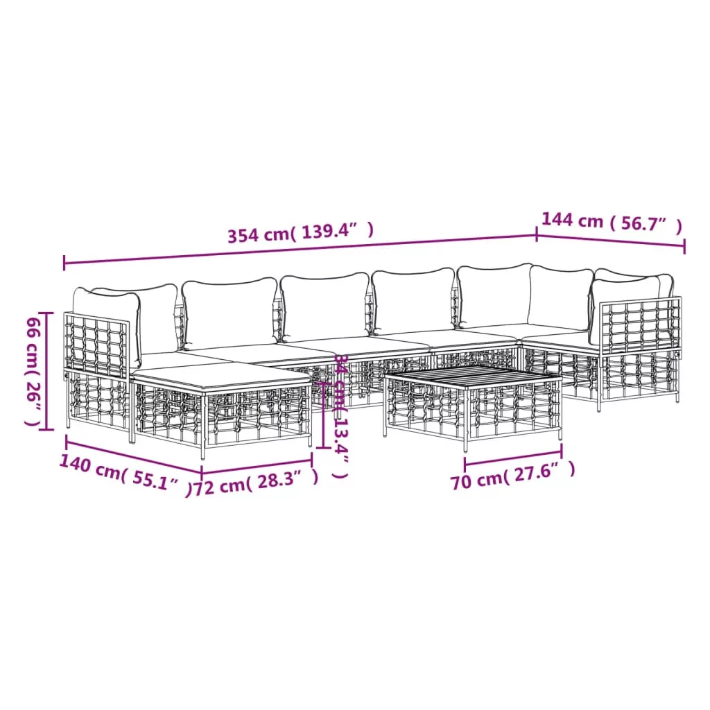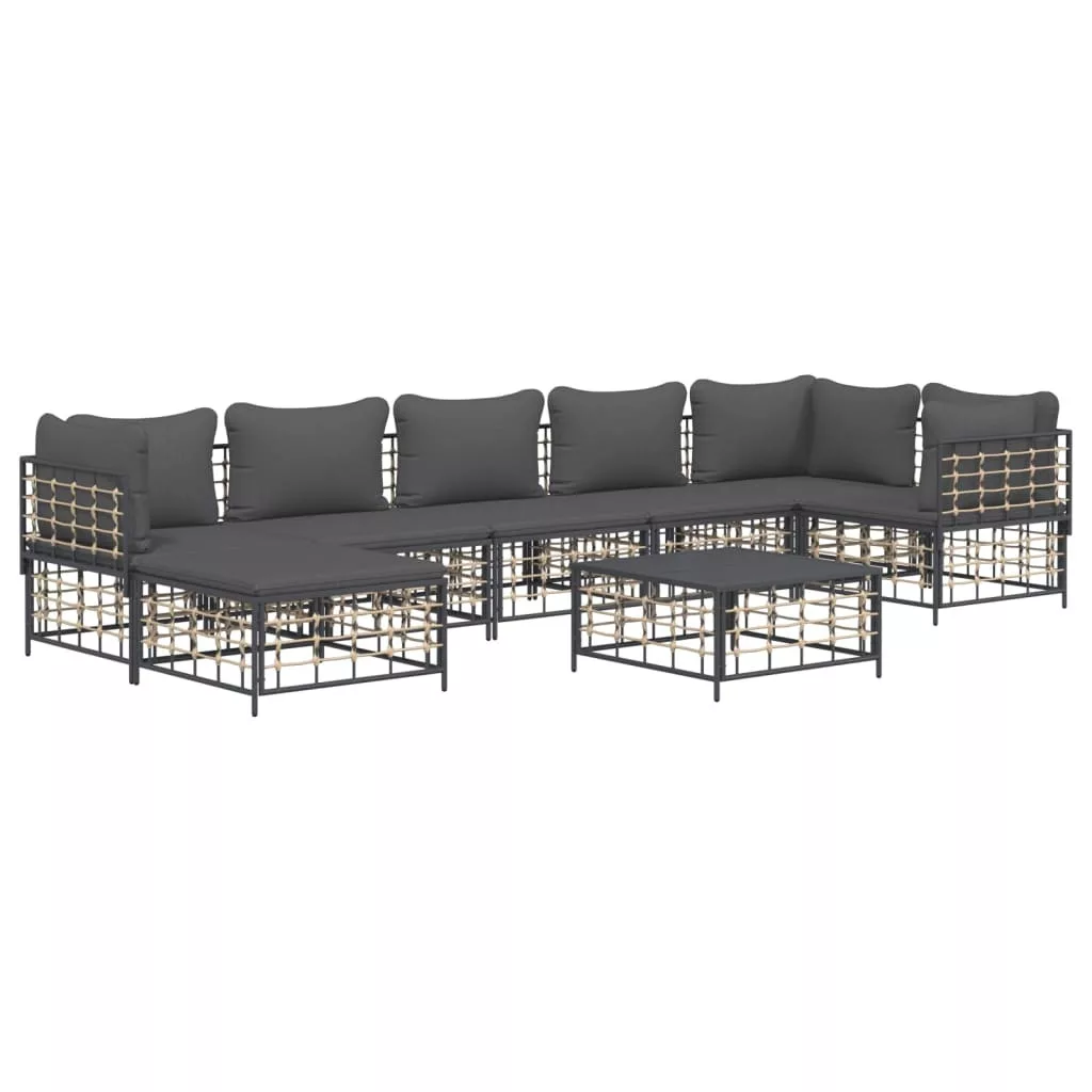 8 részes antracitszürke polyrattan kerti ülőgarnitúra párnákkal