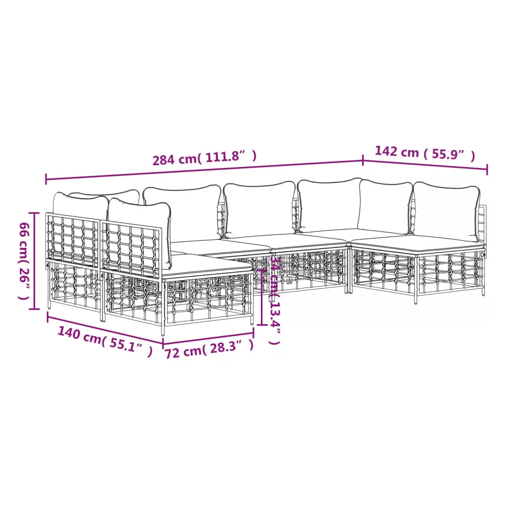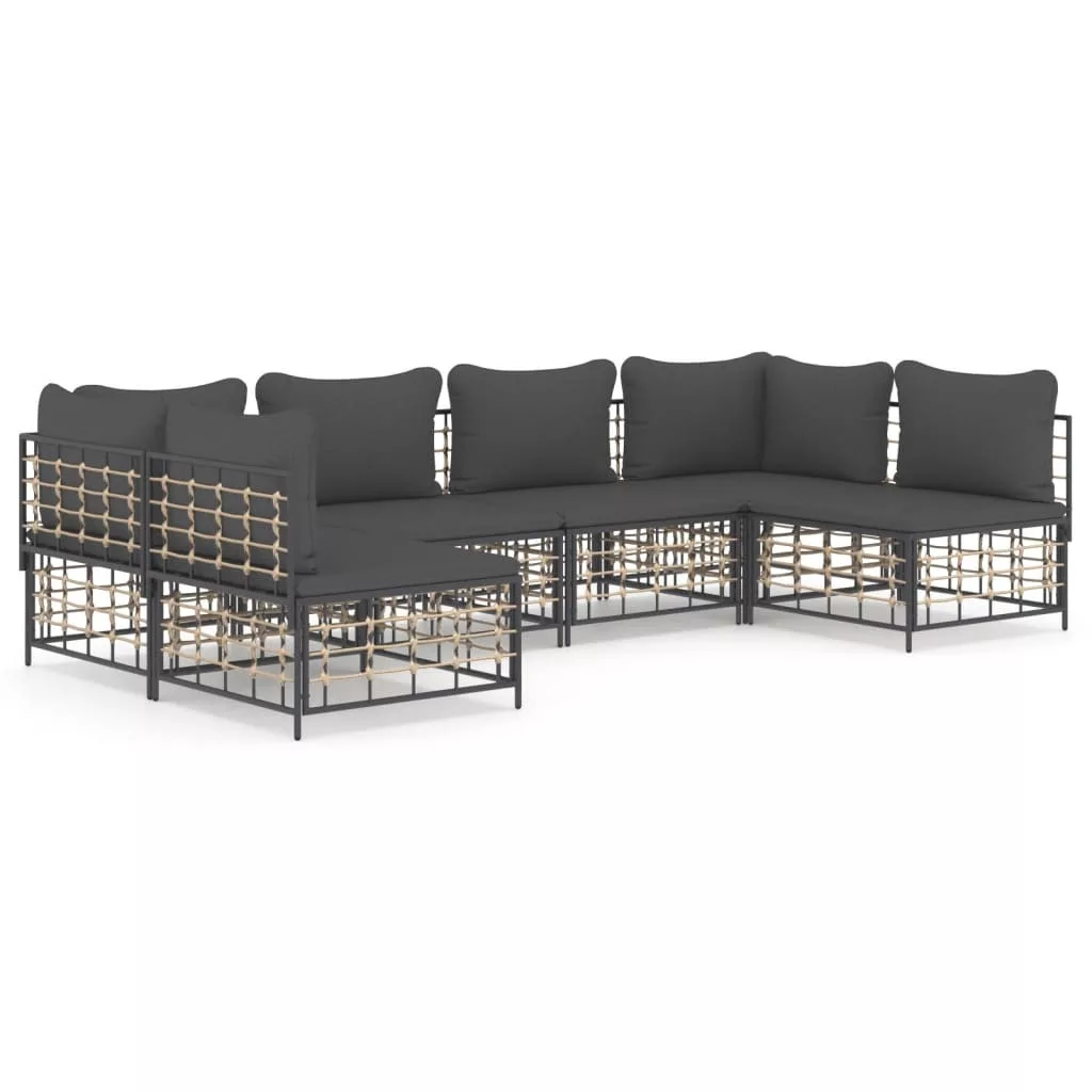 6 részes antracitszürke polyrattan kerti ülőgarnitúra párnákkal