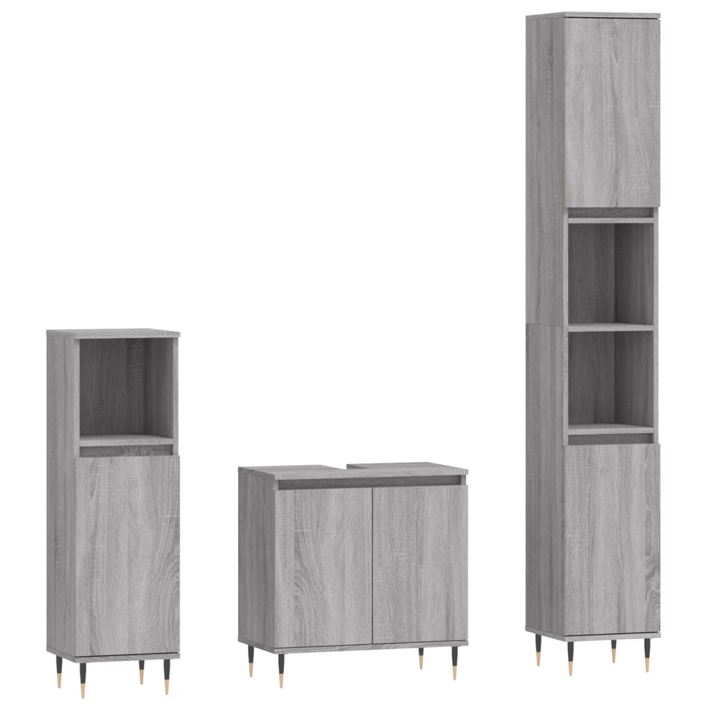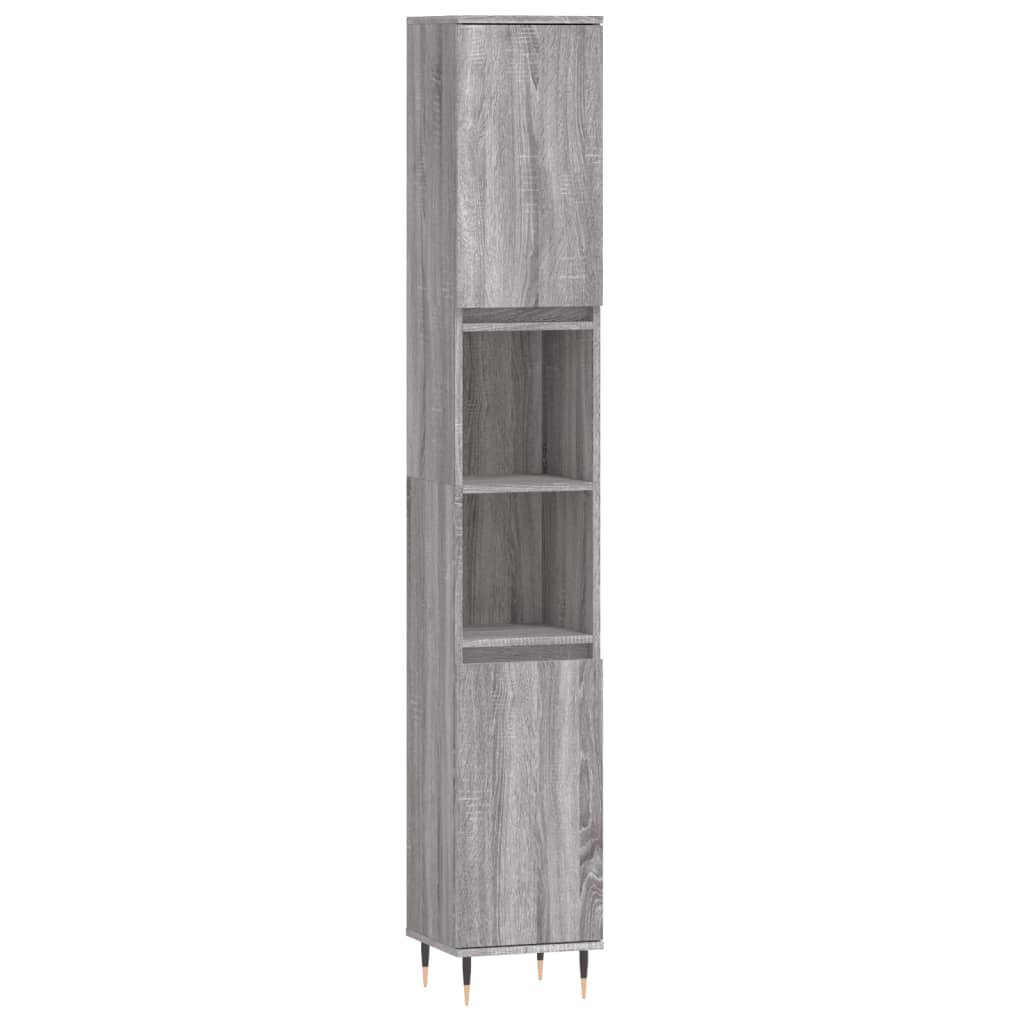 3 részes szürke sonoma szerelt fa fürdőszoba szekrényszett