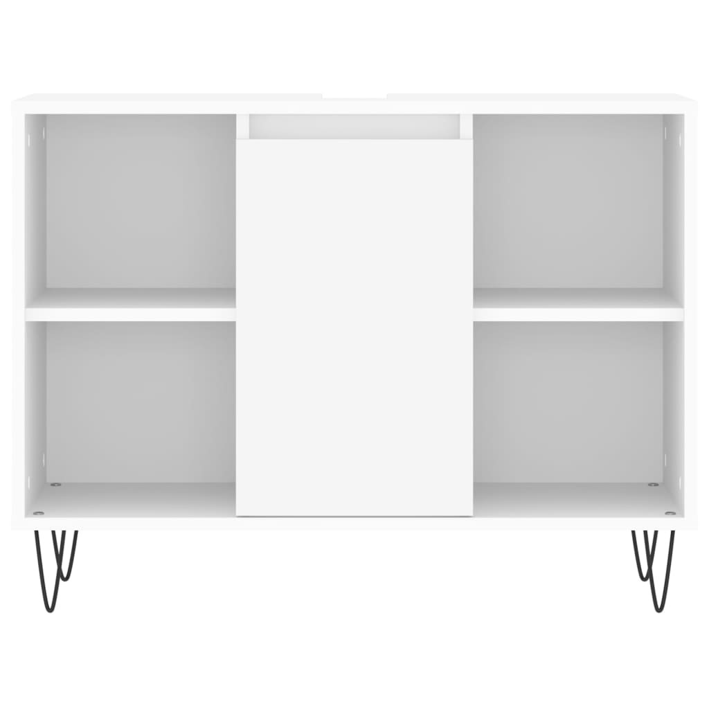 Ez a divatos fürdőszobaszekrény-garnitúra fürdőszobája nagyszerű kiegészítője lesz, rendezett és lenyűgöző megjelenést kölcsönözve neki! Tartós anyag: A szerelt fa kivételes minőségű, sima felületű, szilárd, stabil, és ellenáll a nedvességnek. Vaslábak: A vaslábak modern és nyugodt stílust csempésznek otthonába és a stabilitásról is gondoskodnak.Bőséges tárolóhely: A fürdőszobai szekrény különféle tárolási lehetőségeket és tágas helyet kínál a fürdőszobában lévő tárgyak tárolására. Praktikus kialakítás: A fürdőszobai mosdószekrény teteje ideális a mosdókagyló elhelyezésére. Figyelem:A felborulás elkerülése érdekében ezt a terméket a mellékelt fali rögzítőeszközzel kell használni. Jó tudni:A szállítás a mosdót nem tartalmazza.A falon belüli csavarok és dugók nem alaptartozékok. Azt tanácsoljuk, hogy keressen és használjon kifejezetten az Ön falához megfelelő csavarokat és dugókat. Ha nem biztos benne, konzultálhat egy szakemberrel. Kérjük, olvassa el és kövesse az utasítások minden lépését.