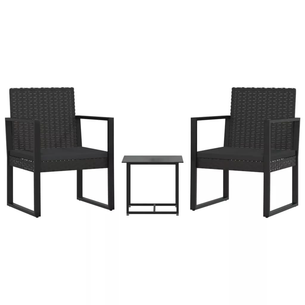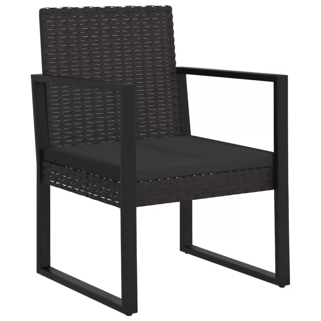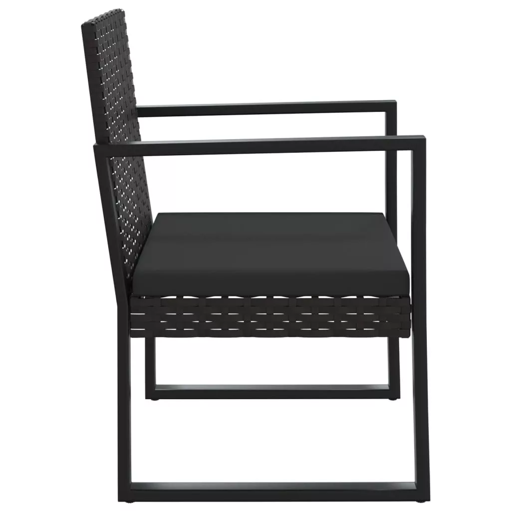 3 részes fekete polyrattan kerti ülőgarnitúra párnákkal