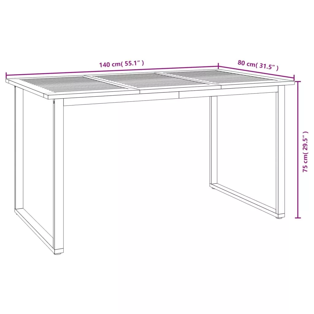 tömör akácfa kerti asztal U-alakú lábakkal 140 x 80 x 75 cm