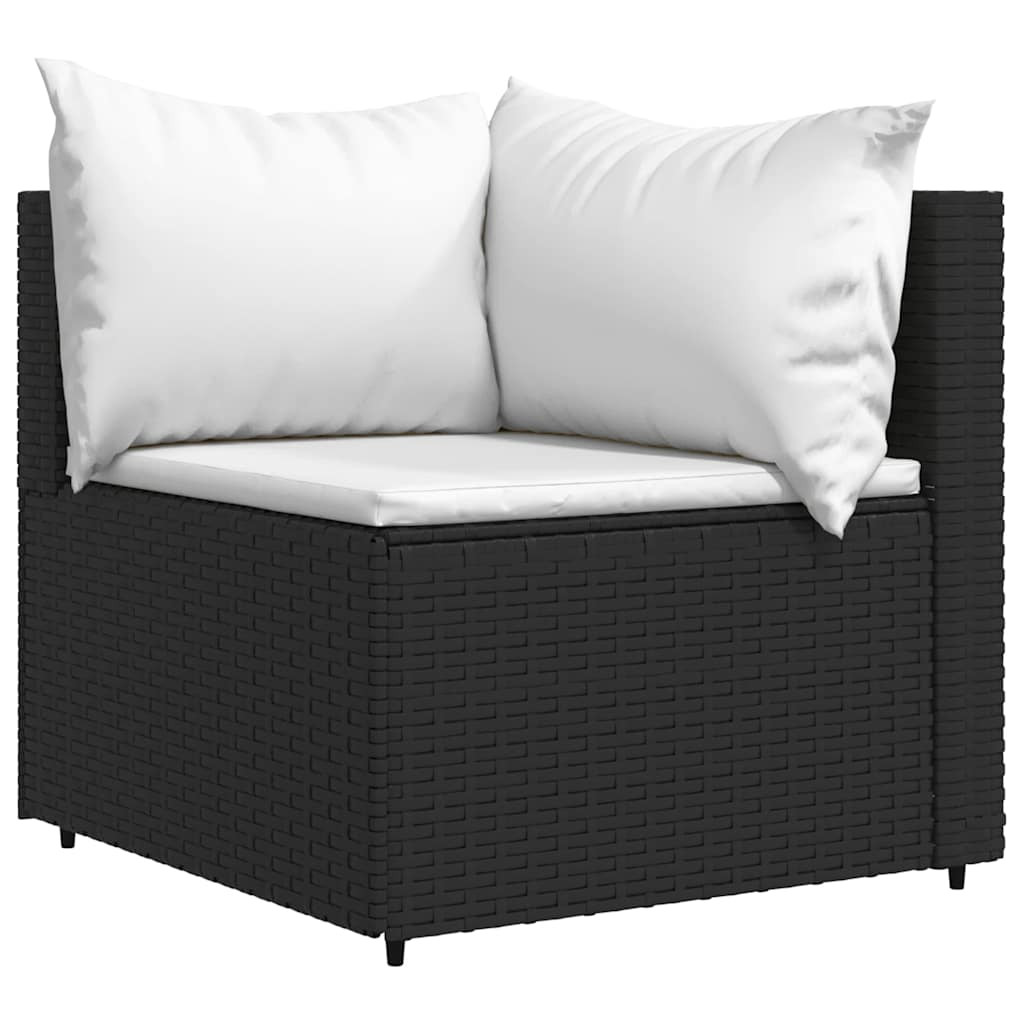 3 részes fekete polyrattan kerti ülőgarnitúra párnákkal
