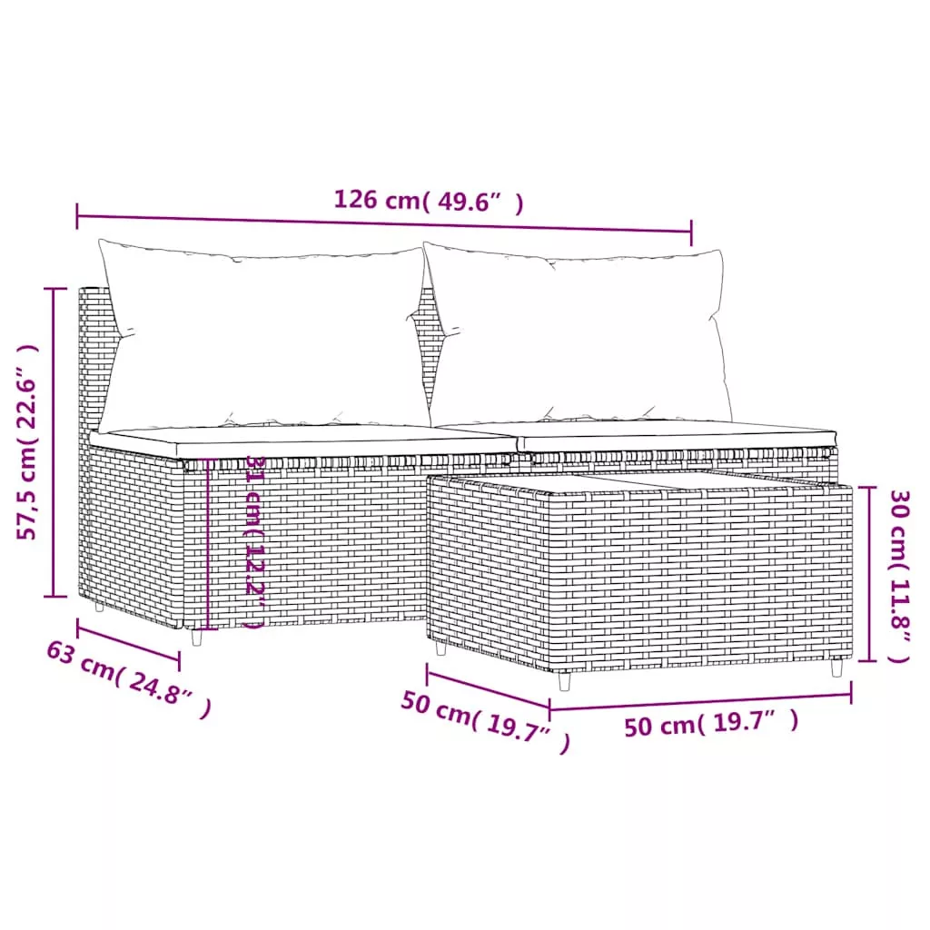 3 részes barna polyrattan kerti ülőgarnitúra párnával