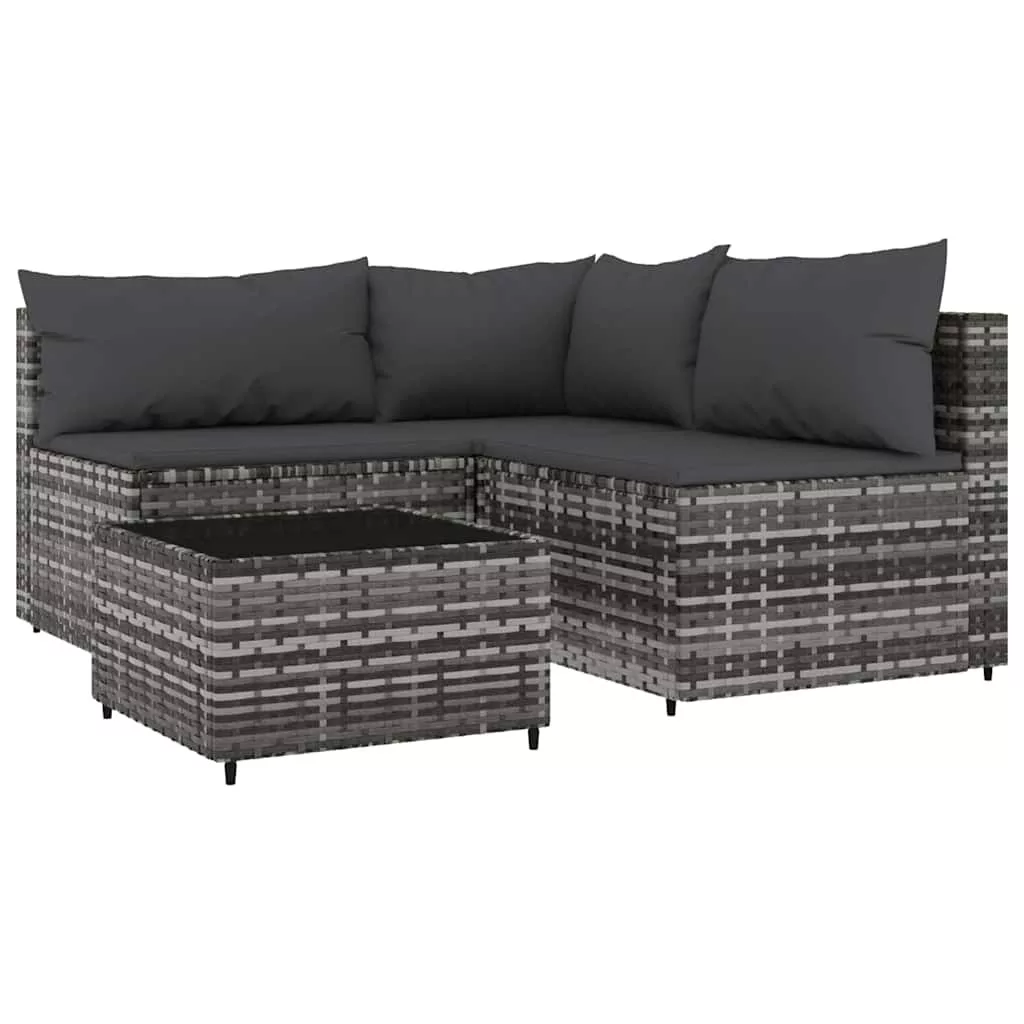 4 részes szürke polyrattan kerti ülőgarnitúra párnákkal