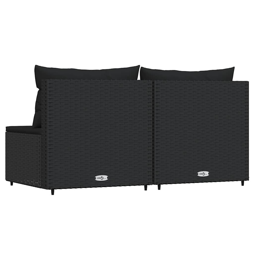 2 db fekete polyrattan kerti középső kanapé párnákkal