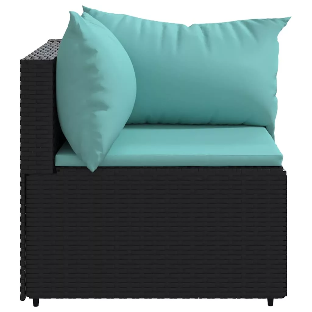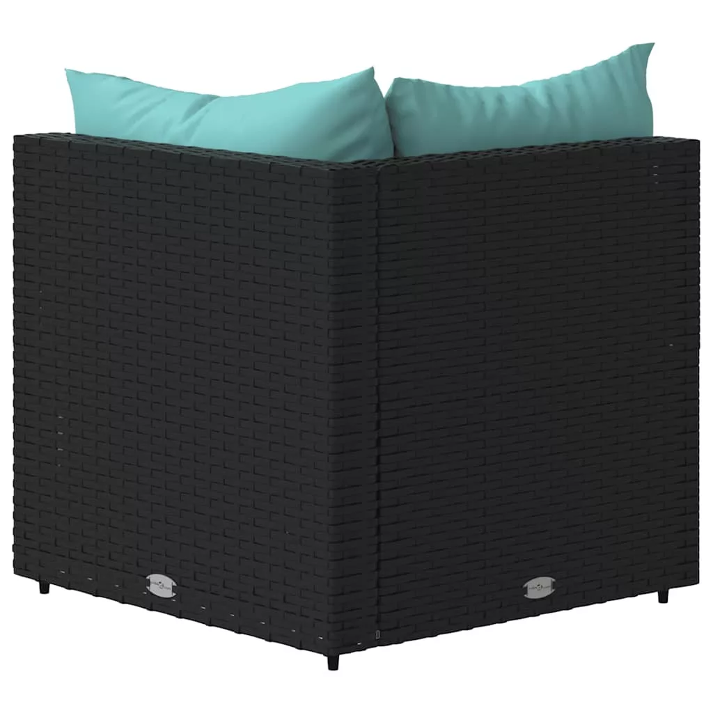 2 db fekete polyrattan kerti sarokkanapé párnákkal