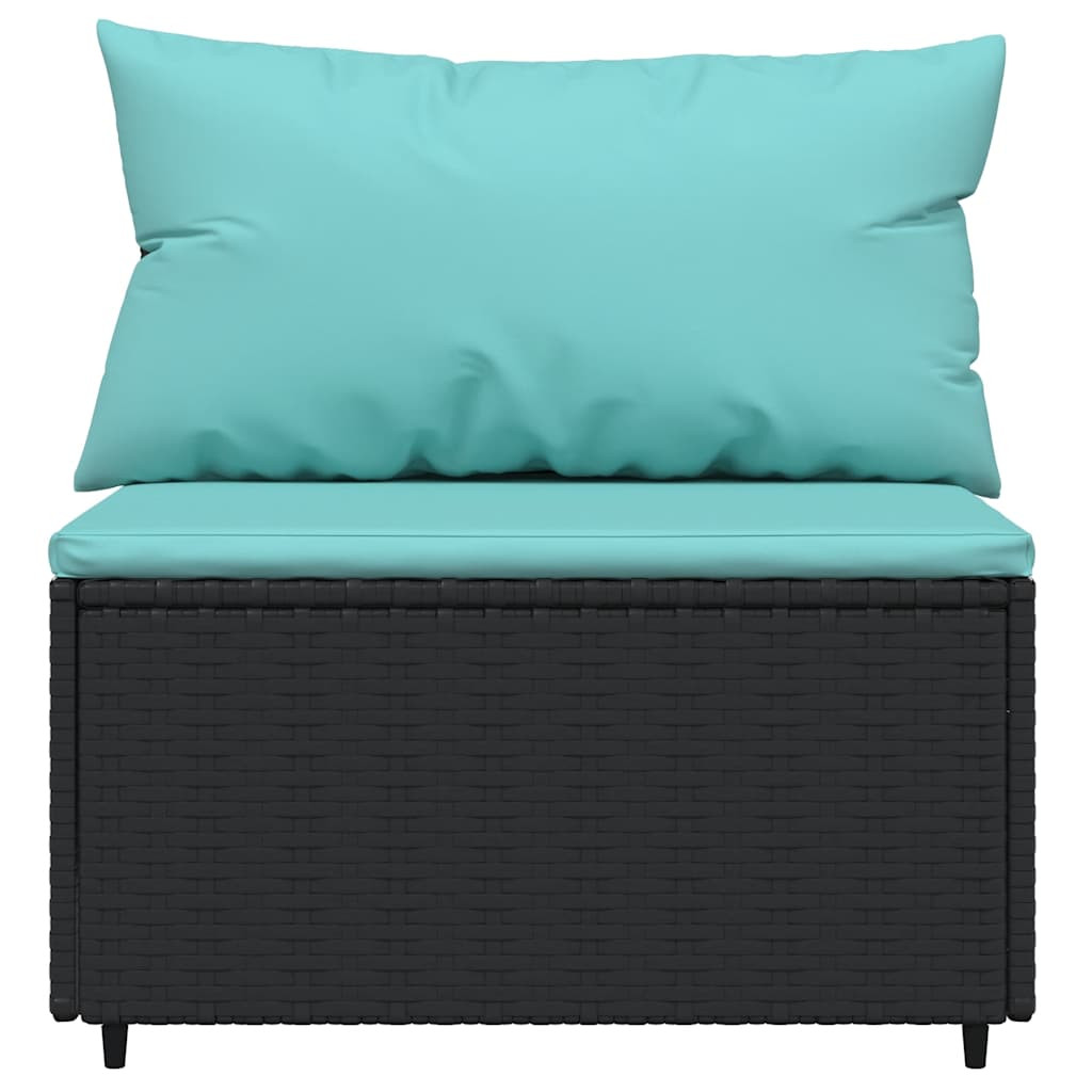 3 részes fekete polyrattan kerti ülőgarnitúra párnákkal
