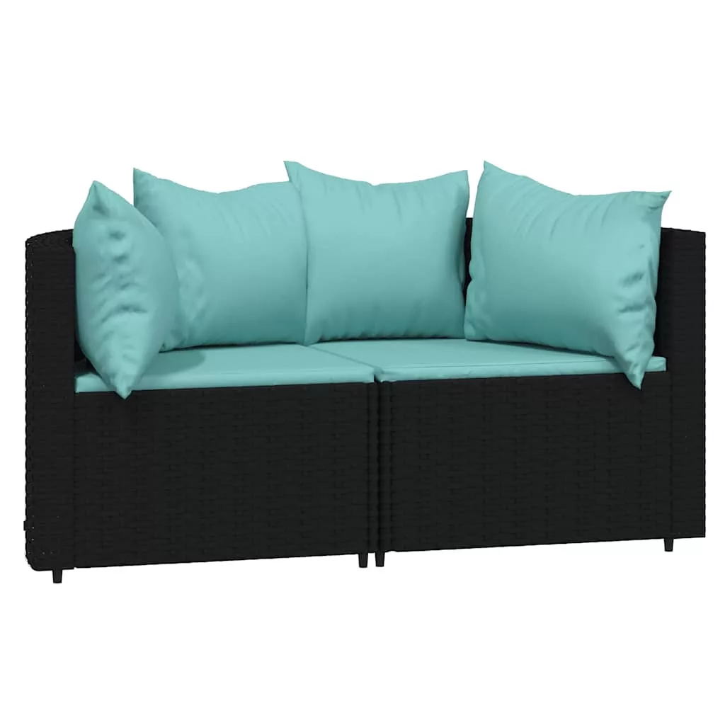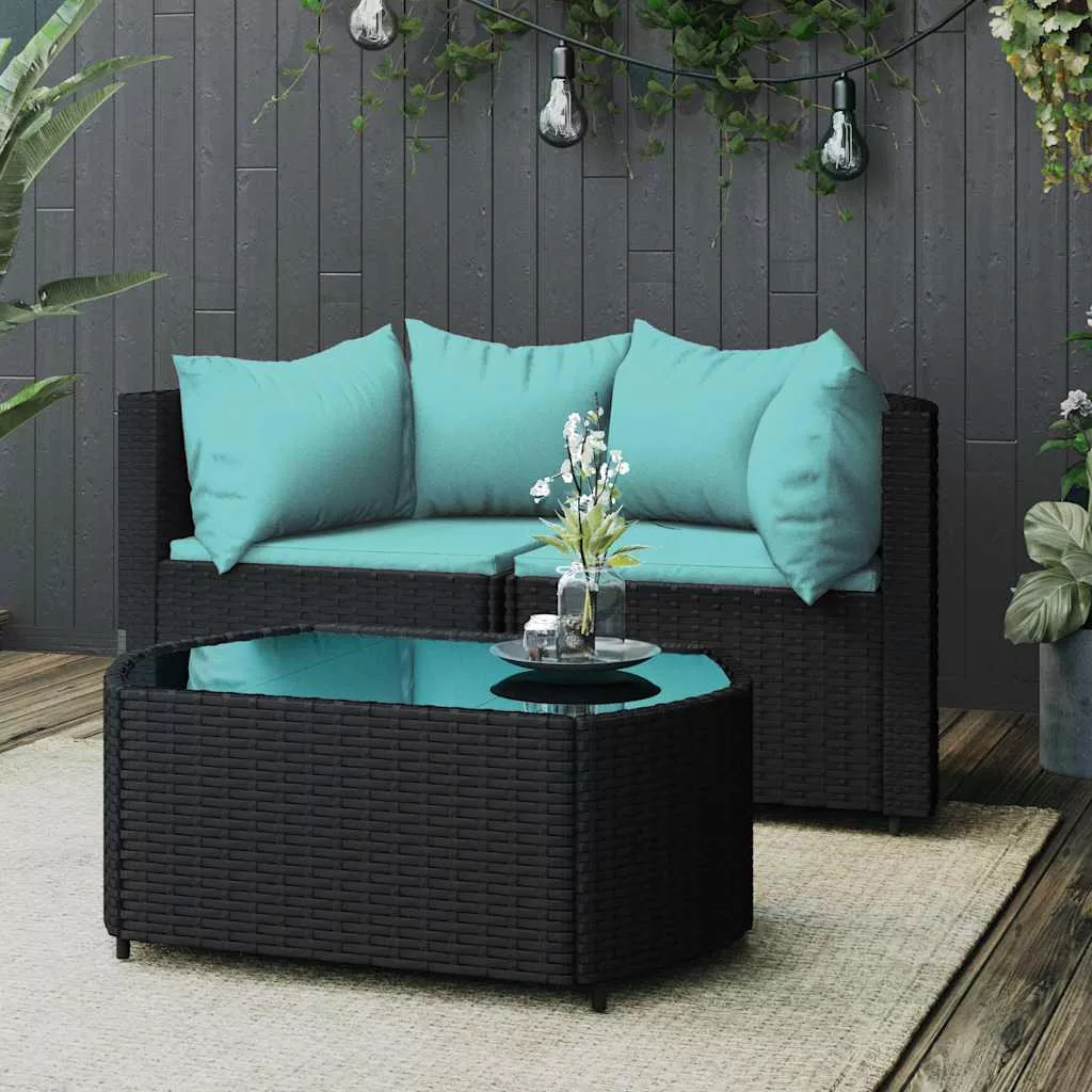 3 részes fekete polyrattan kerti ülőgarnitúra párnákkal