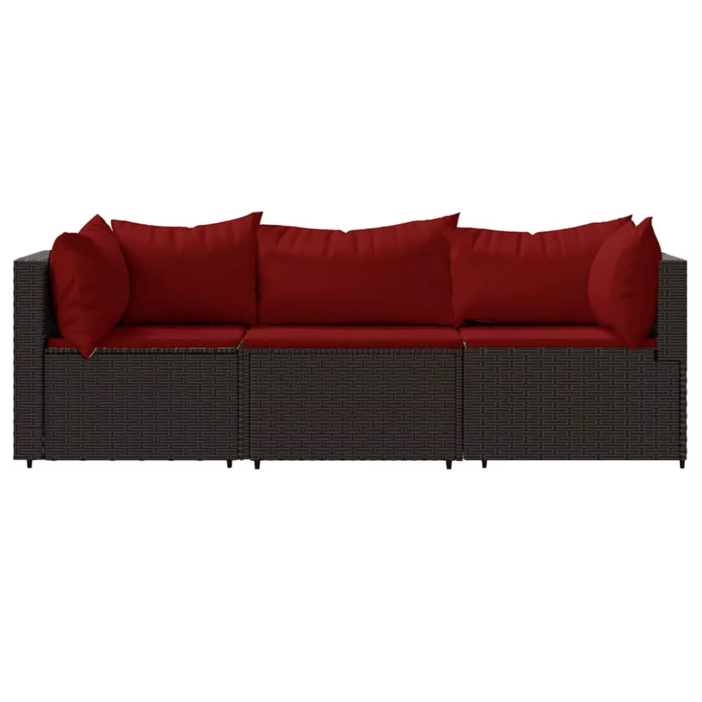 3 részes barna polyrattan kerti ülőgarnitúra párnával