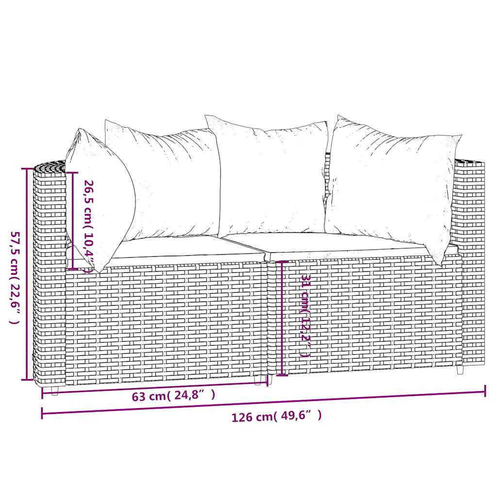 2 db barna polyrattan kerti sarokkanapé párnákkal