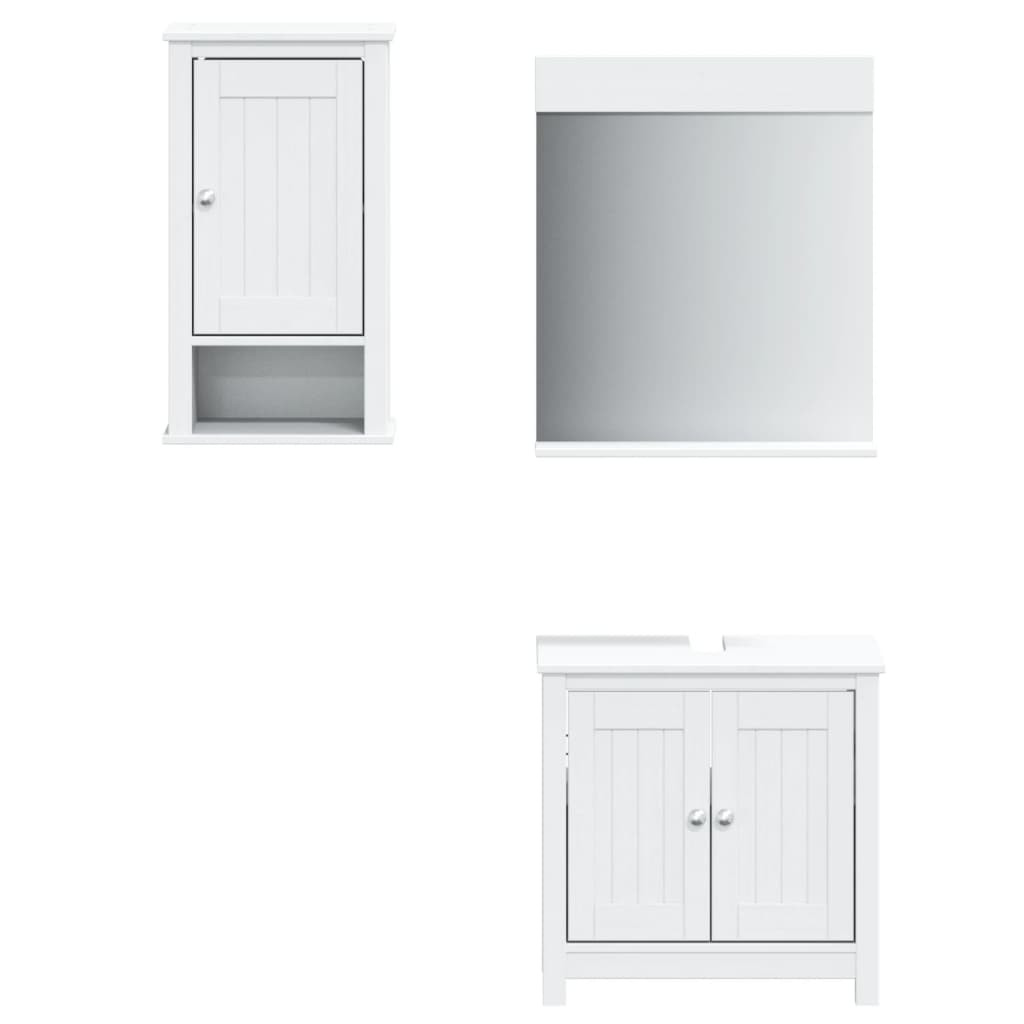 BERG háromrészes fehér tömör fenyőfa fürdőszobabútor-garnitúra