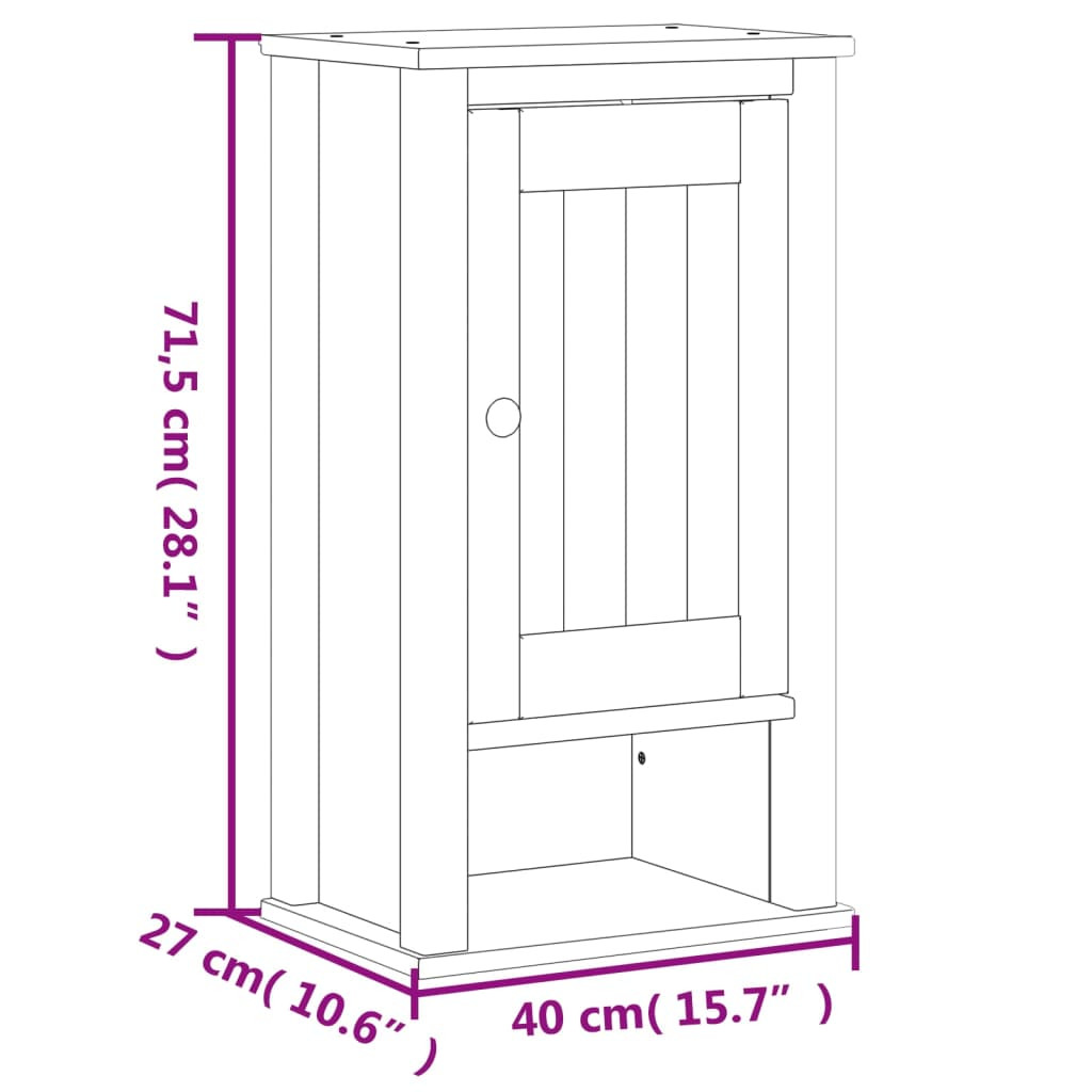 Ez a tágas tárolóhellyel rendelkező, praktikus fürdőszobaszekrény-garnitúra fürdőszobája nagyszerű kiegészítője lesz, rendezett és lenyűgöző megjelenést kölcsönözve neki! Tömör fenyőfa: A tömör fenyőfa egy gyönyörű természetes anyag. A fenyőfa erezete egyenes, a csomók pedig jellegzetes, rusztikus megjelenést kölcsönöznek az anyagnak.Bőséges tárolóhely: A fa fürdőszobaszekrény különféle tárolási lehetőségeket és tágas helyet kínál a fürdőszobában lévő tárgyak számára.Helytakarékos kialakítás: A fürdőszobai fali szekrény és piperetükör könnyen a falra szerelhető, így jelentős alapterületet takaríthat meg. A fürdőszobaszekrény teteje ideális a mosdókagyló elhelyezésére, így teljes mértékben kihasználhatja a mosdó alatti üres helyet.Tiszta kép: Az üveg tükörfelület finom és torzításmentes képet tükröz vissza, így alkalmas sminkeléshez, borotválkozáshoz vagy az öltöny ellenőrzésére.Könnyen tisztítható: Az UV-festett kialakítás letisztult felületet és könnyű tisztítást garantált. A fürdőszobabútor vízálló, így hosszú évekig használható. Figyelem:A felborulás elkerülése érdekében ezt a terméket fali rögzítőeszközzel (nem tartozék) kell használni. Jó tudni:A falon belüli csavarok és dugók nem alaptartozékok. Azt tanácsoljuk, hogy keressen és használjon kifejezetten az Ön falához megfelelő csavarokat és dugókat. Ha nem biztos benne, konzultálhat egy szakemberrel. Kérjük, olvassa el és kövesse az utasítások minden lépését.