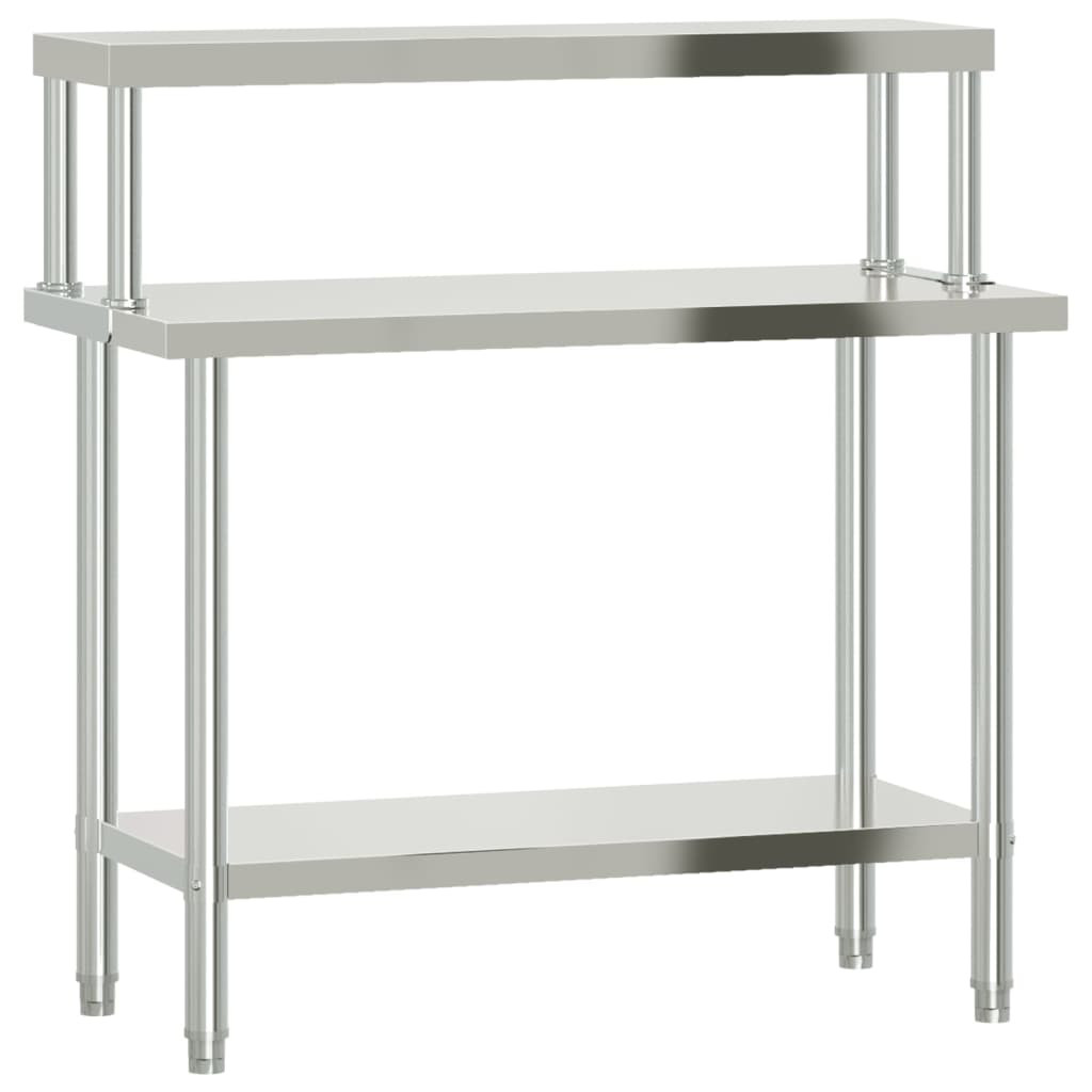 rozsdamentes acél felső polcos konyhai munkaasztal 110x55x120cm