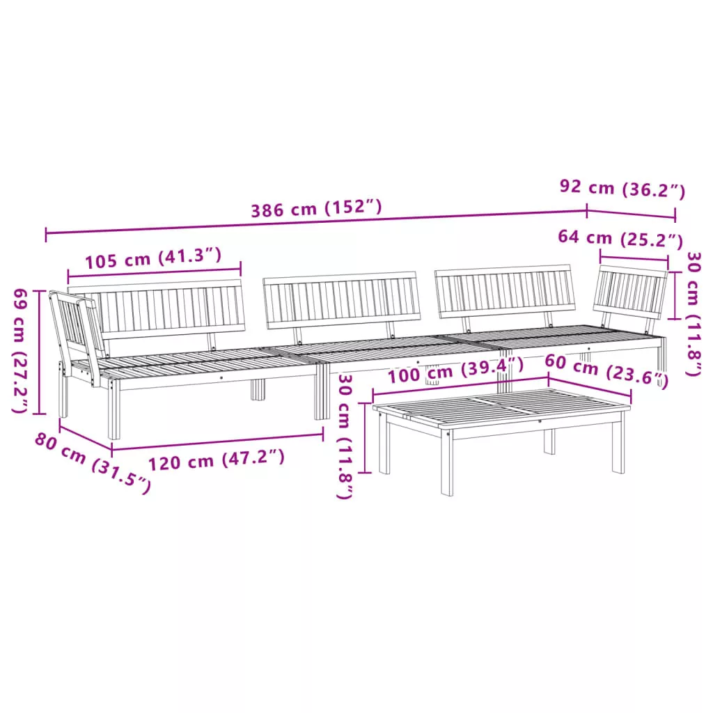 4 részes tömör akácfa kerti raklap ülőgarnitúra