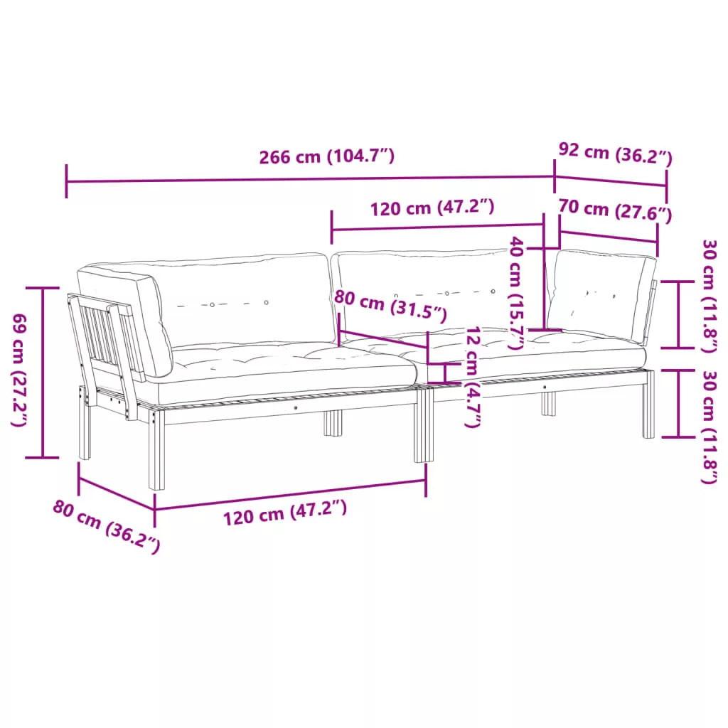 2 db tömör akácfa kerti raklap sarokkanapé párnával