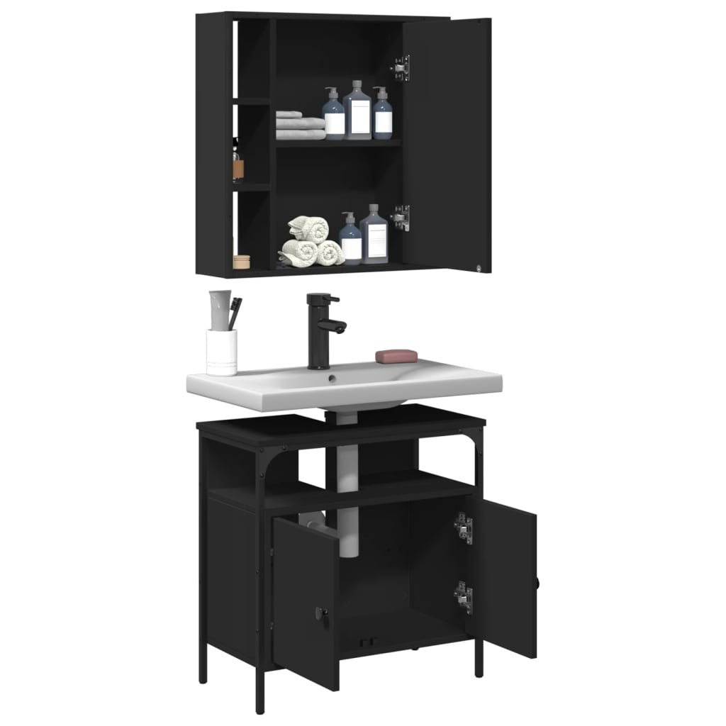 2 részes fekete szerelt fa fürdőszobai bútorszett