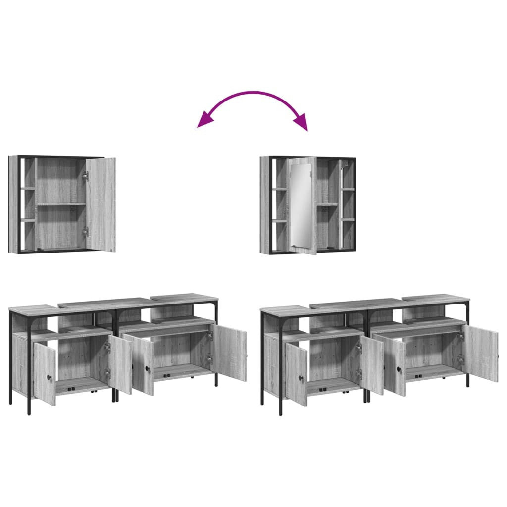 3 részes szürke sonoma szerelt fa fürdőszoba szekrényszett