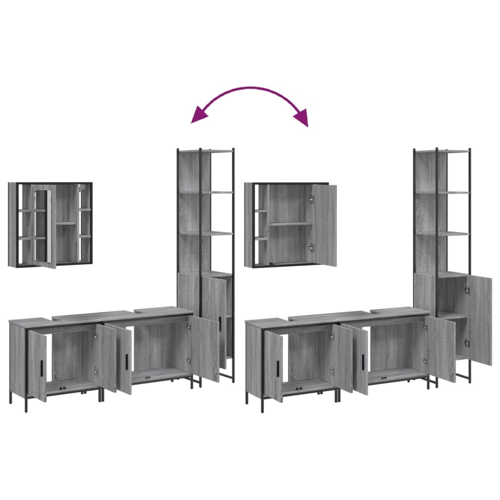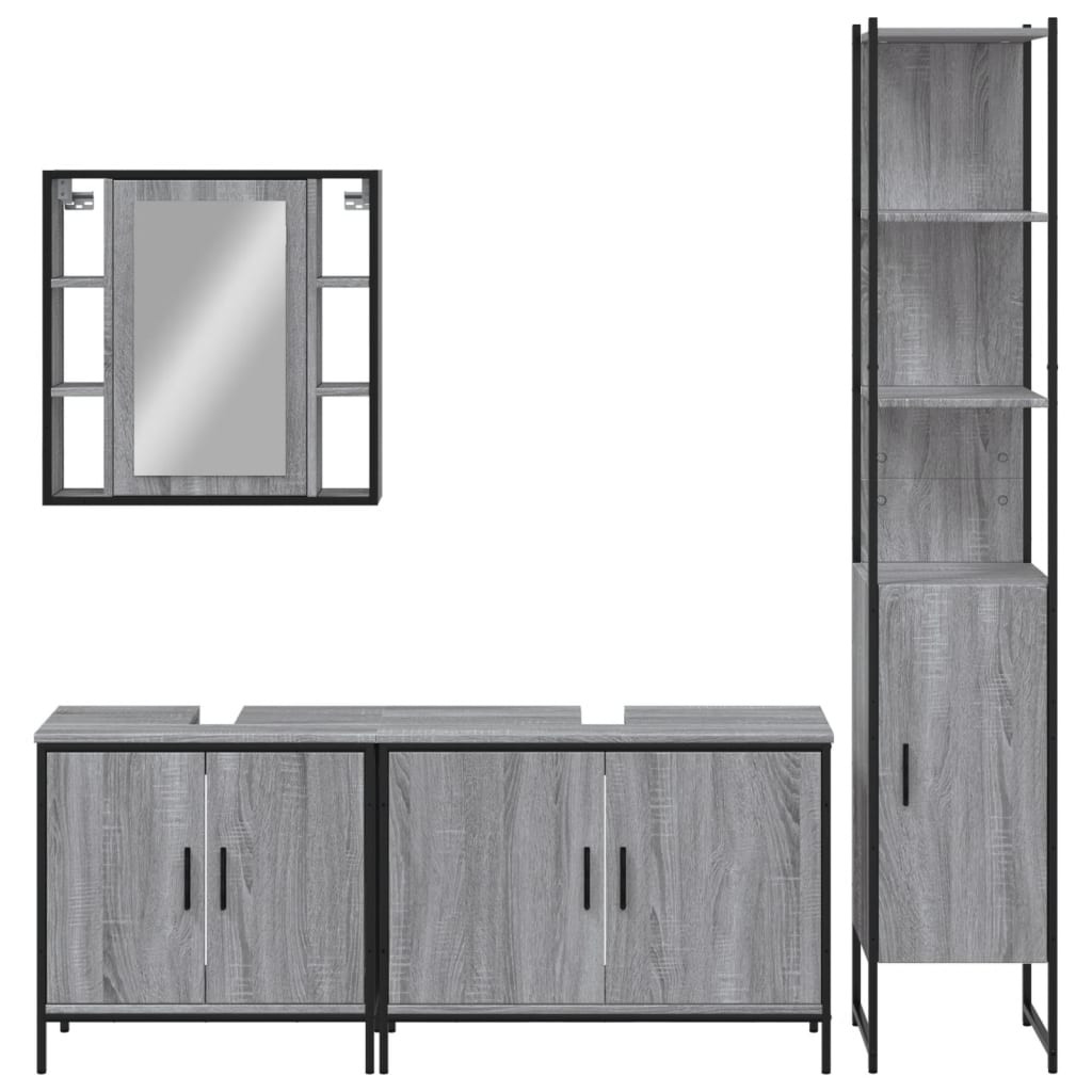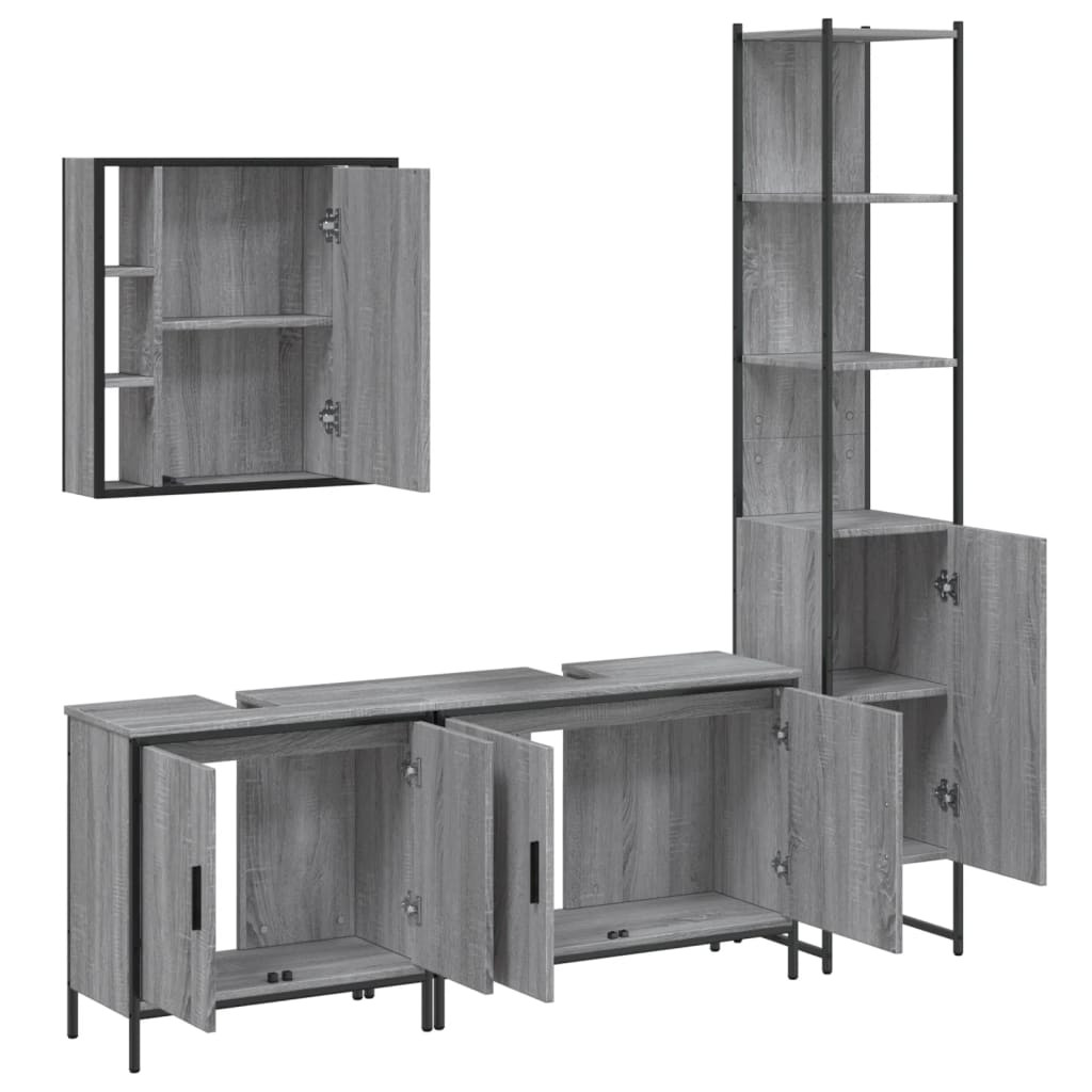 4 részes szürke sonoma szerelt fa fürdőszoba szekrényszett