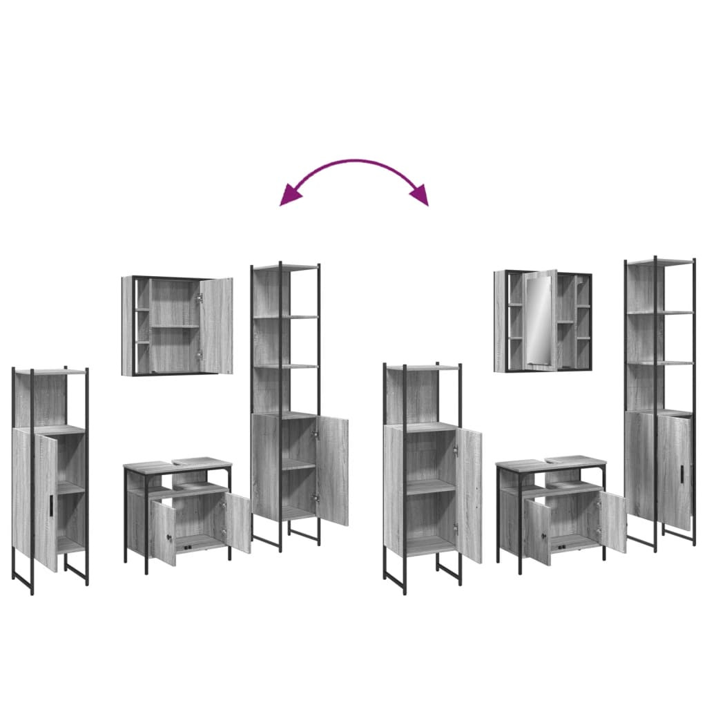 4 részes szürke sonoma szerelt fa fürdőszoba szekrényszett