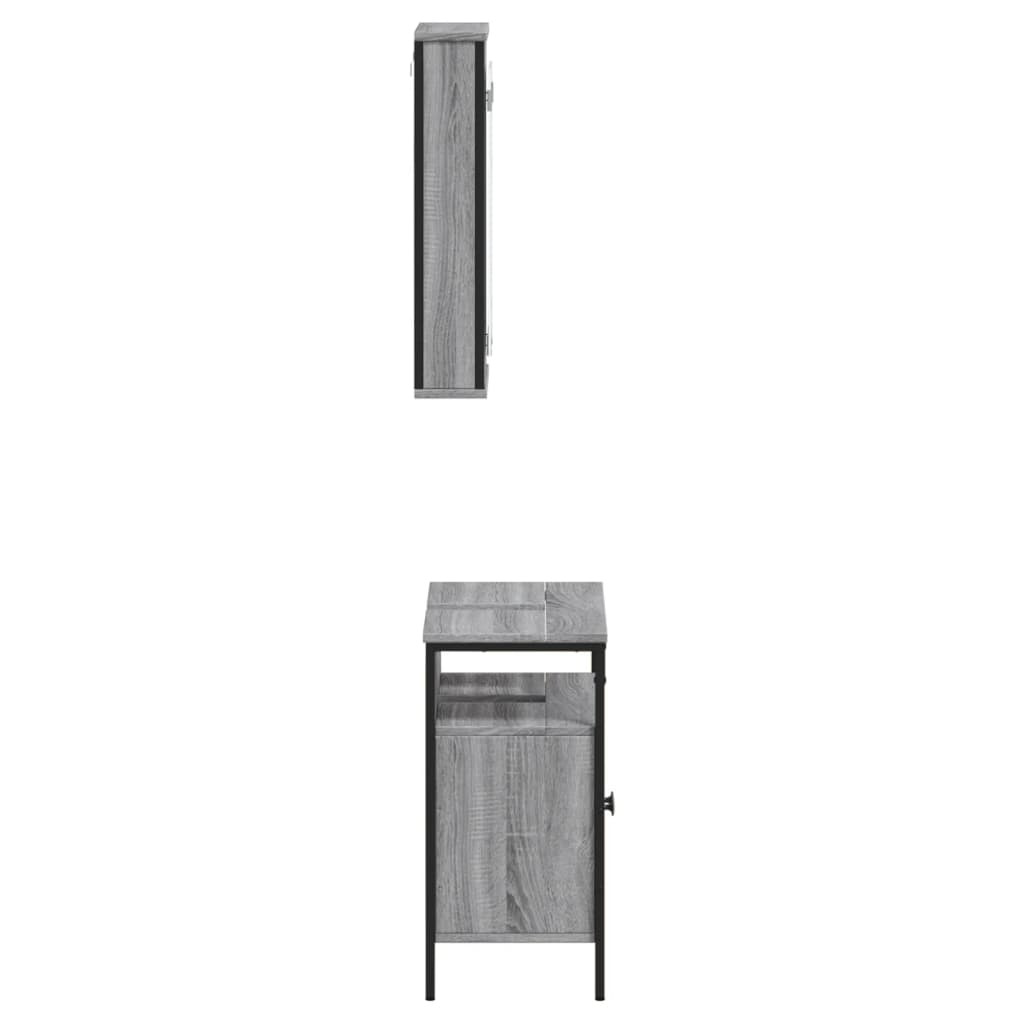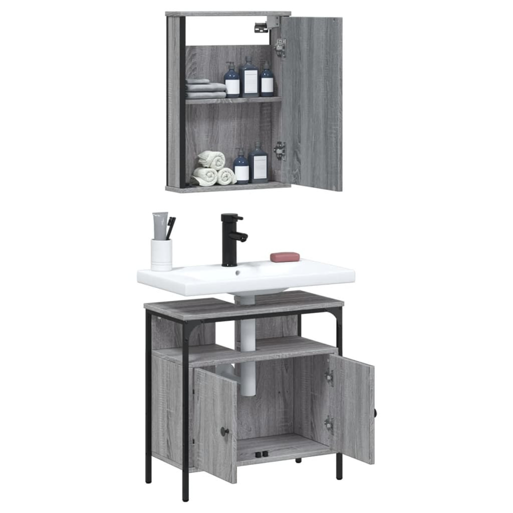 2 részes szürke sonoma színű szerelt fa fürdőszobai bútorszett
