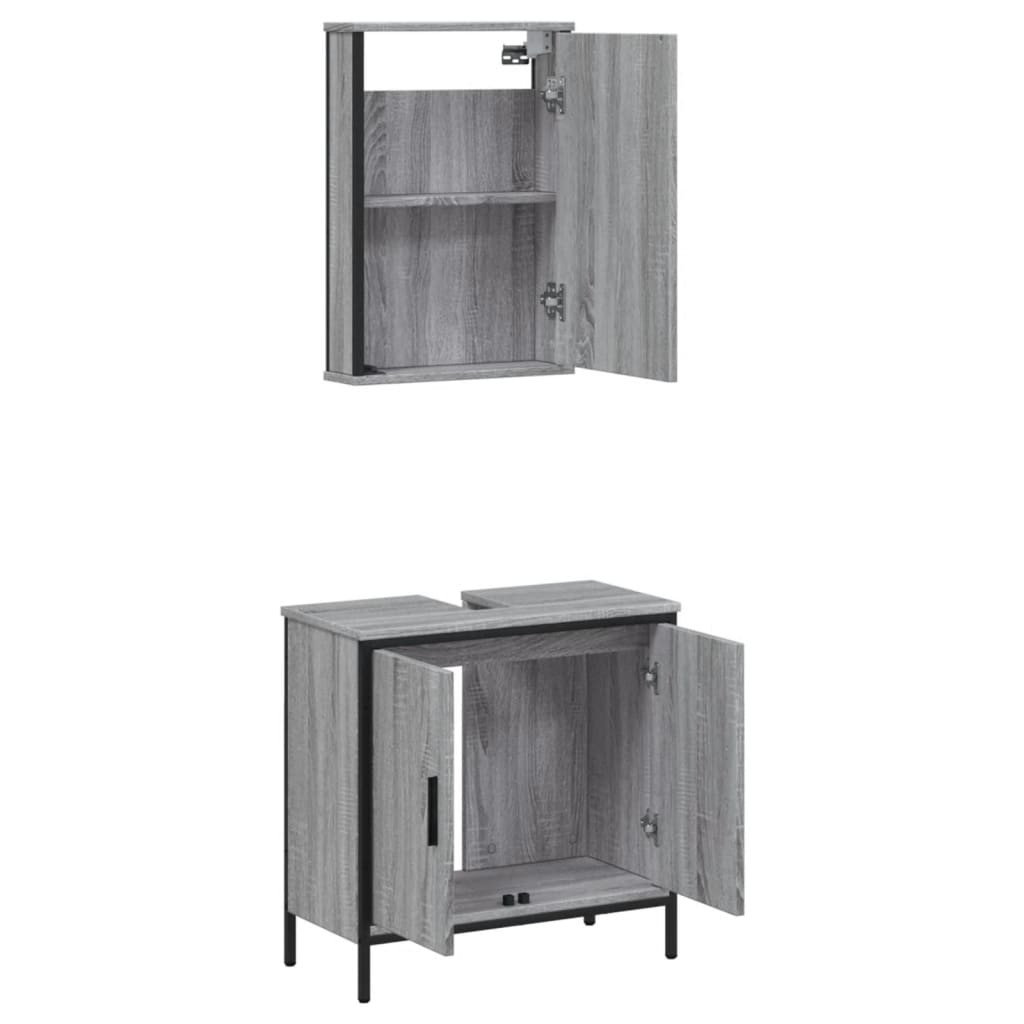 2 részes szürke sonoma színű szerelt fa fürdőszobai bútorszett