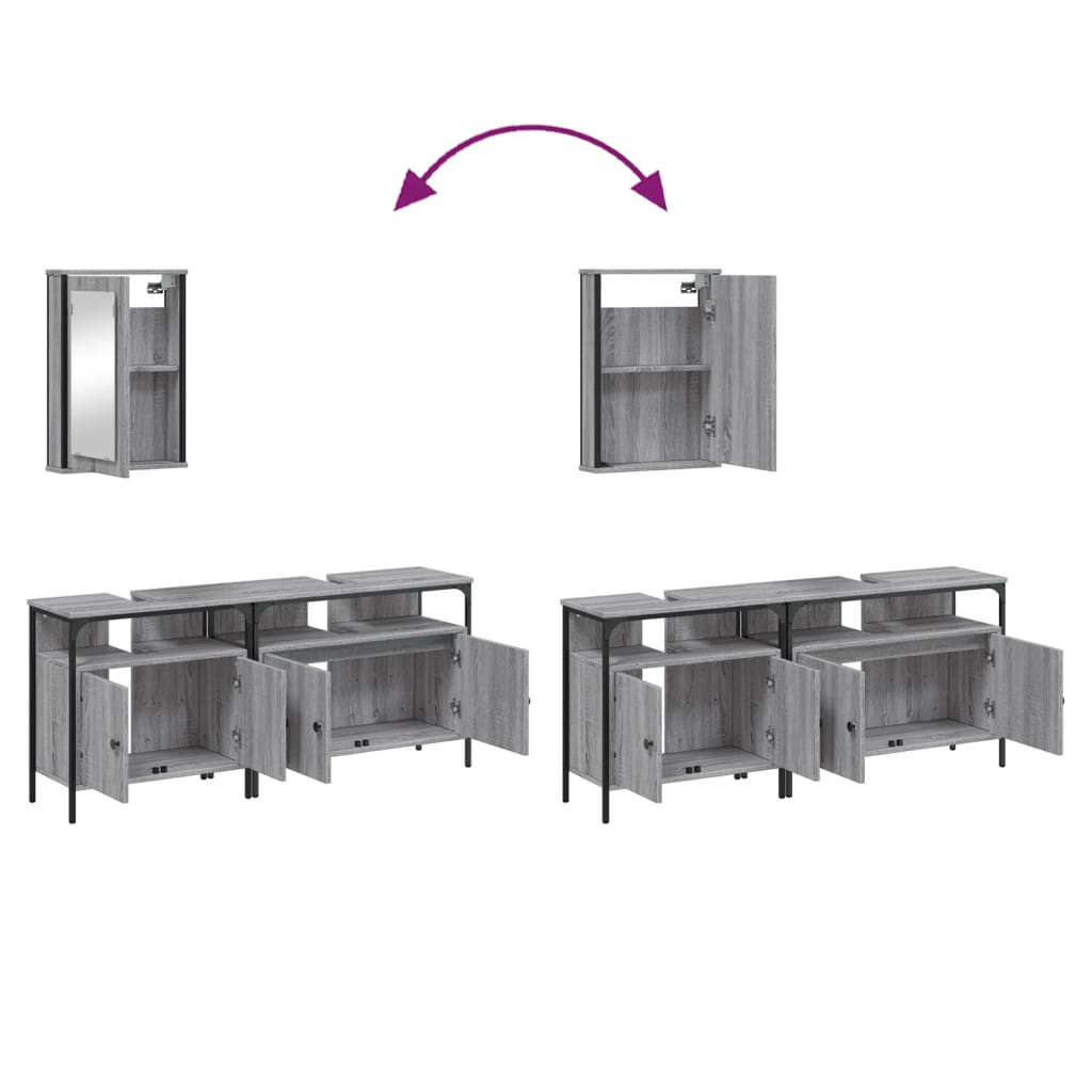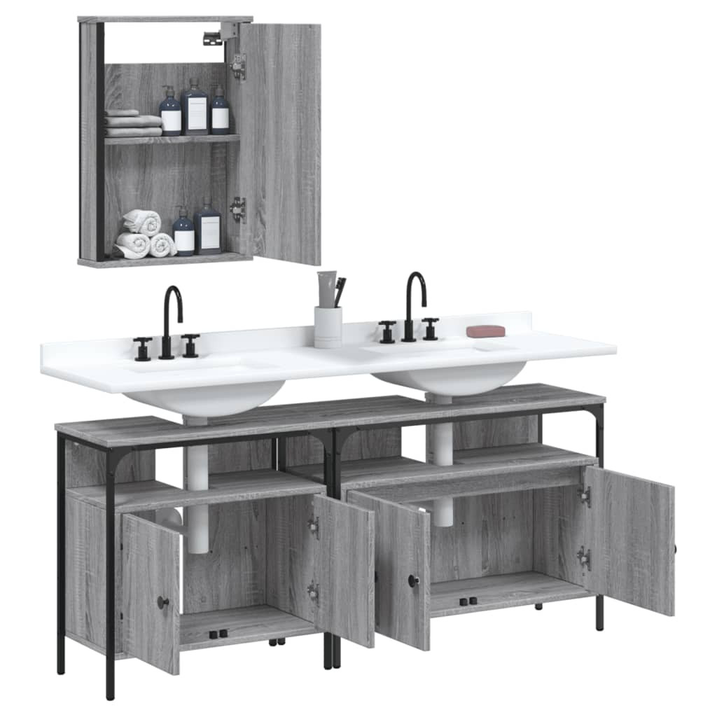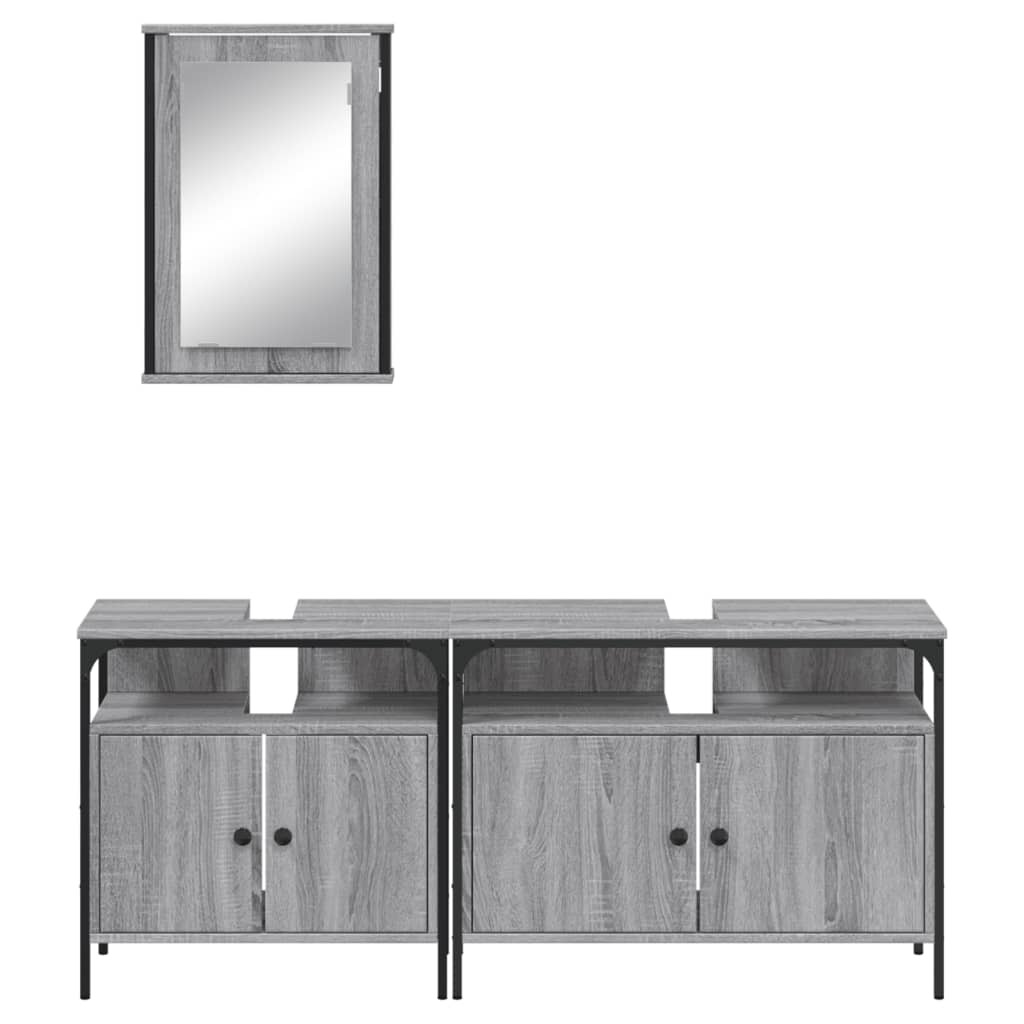 3 részes szürke sonoma színű szerelt fa fürdőszobai bútorszett