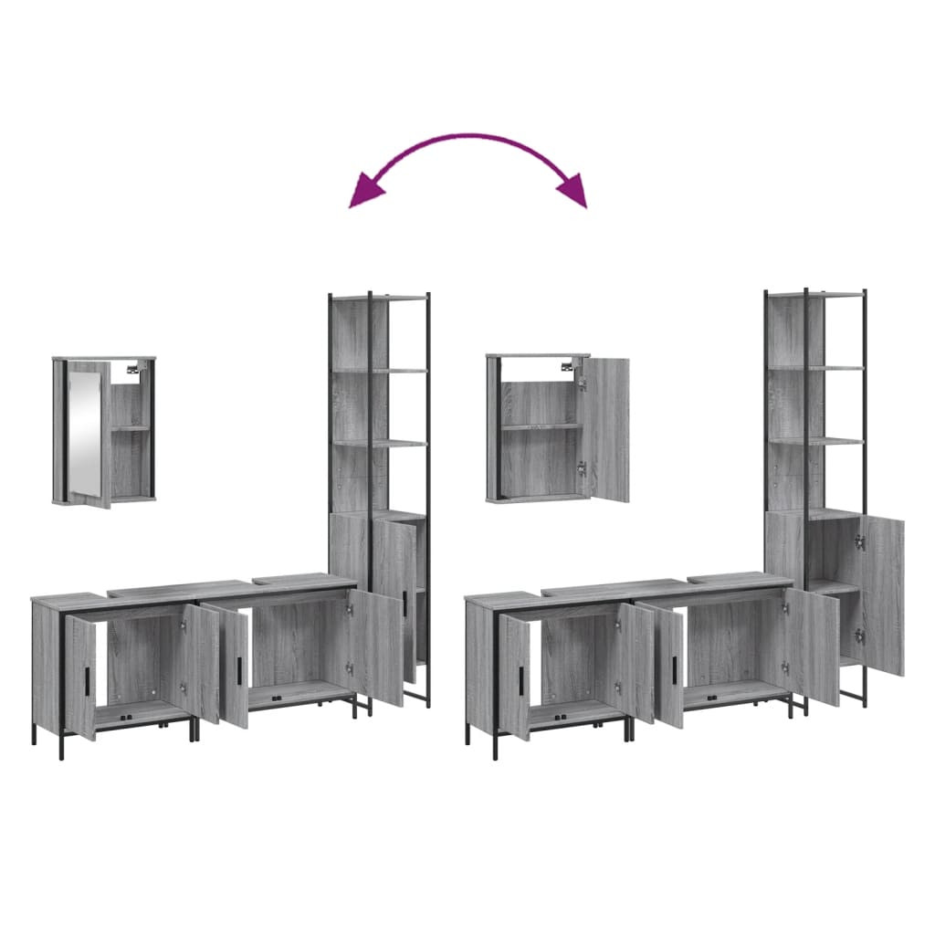 4 részes szürke sonoma színű szerelt fa fürdőszobai bútorszett