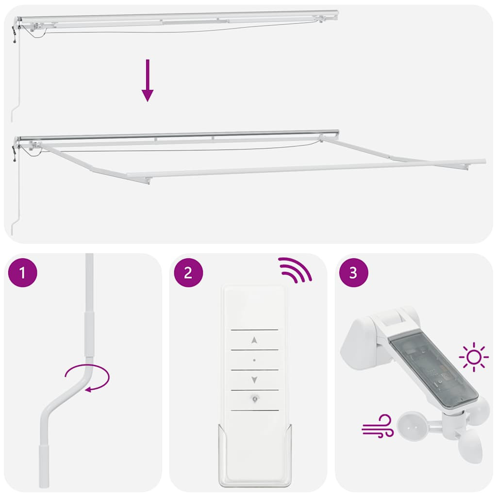 Teremtsen kellemes és hűvös helyet a teraszon, és védje meg magát az UV-sugaraktól ezzel a kihúzható napellenzővel! Vízálló és UV-álló szövet: A napellenző szövet nagy sűrűségű poliészterből készül, PU bevonattal, amely vízálló, valamint UV- és fakulásálló.Automata funkció: A napellenzőt a mellékelt távirányítóval könnyedén kinyithatja és visszahúzhatja.Könnyen kezelhető: A szög és a magasság állítható, hogy megfeleljen az Ön különböző igényeinek. A napellenző a hosszú hajtókarral zökkenőmentesen nyitható és visszahúzható.LED-lámpák és szélérzékelő: A napellenző beépített LED-lámpái megvilágítják kültéri környezetét, ezáltal hangulatos és romantikus légkört teremtve, amikor lemegy a nap. Szélérzékelővel is fel van szerelve, amely erősen szeles napokon automatikusan becsukja a napellenzőt.Széleskörű alkalmazás: Ez a kihúzható napellenző egyszerű, stílusos kialakítású, amely jól illeszkedik otthoni vagy kereskedelmi környezetébe. Különféle helyekre alkalmas, például erkélyre, teraszra, udvarra, éttermekbe, kávézókba, üzletekbe stb.