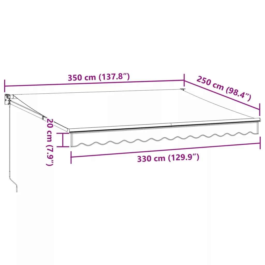 Teremtsen kellemes és hűvös helyet a teraszon, és védje meg magát az UV-sugaraktól ezzel a kihúzható napellenzővel! Tartós anyag: A napellenző váza porszórt alumíniumból készült, amely robusztus és tartós. A PU felületkezeléssel ellátott szövet UV-álló. Óvja családját vagy vendégeit az UV-sugárzástól és a vakító napfénytől.Könnyen kezelhető: A szög és a magasság állítható, hogy megfeleljen az Ön különböző igényeinek. A napellenző a hosszú hajtókarral zökkenőmentesen nyitható és visszahúzható.Széleskörű alkalmazás: Ez a kihúzható napellenző egyszerű, stílusos kialakítású, amely jól illeszkedik otthoni vagy kereskedelmi környezetébe. Különféle helyekre alkalmas, például erkélyre, teraszra, udvarra, éttermekbe, kávézókba, üzletekbe stb. A gyermekeket felügyelni kell, hogy ne játszhassanak az eszközzel. Tartsd távol a gyermekeket a szerelési területtől. Figyelem: Olvasd el alaposan az utasításokat használat előtt, és tartsd meg későbbi hivatkozásra.