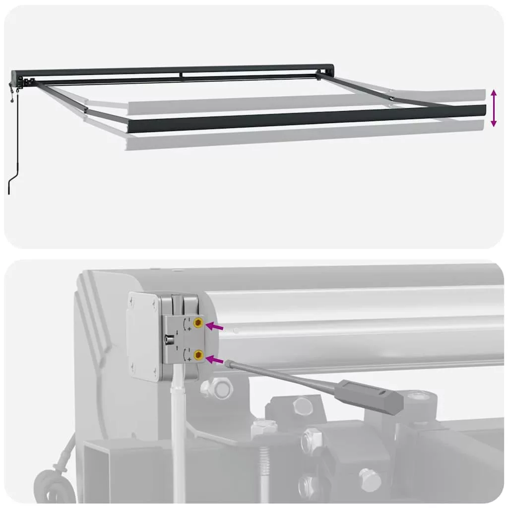 Teremtsen kellemes és hűvös helyet a teraszon, és védje meg magát az UV-sugaraktól ezzel a kihúzható napellenzővel! Tartós anyag: A napellenző váza porszórt alumíniumból készült, amely robusztus és tartós. A PU felületkezeléssel ellátott szövet UV-álló. Óvja családját vagy vendégeit az UV-sugárzástól és a vakító napfénytől.Automata funkció: A napellenzőt a mellékelt távirányítóval könnyedén kinyithatja és visszahúzhatja.Könnyen kezelhető: A szög és a magasság állítható, hogy megfeleljen az Ön különböző igényeinek. A napellenző a hosszú hajtókarral zökkenőmentesen nyitható és visszahúzható.Széleskörű alkalmazás: Ez a kihúzható napellenző egyszerű, stílusos kialakítású, amely jól illeszkedik otthoni vagy kereskedelmi környezetébe. Különféle helyekre alkalmas, például erkélyre, teraszra, udvarra, éttermekbe, kávézókba, üzletekbe stb. Ez a készülék 8 éves vagy annál idősebb gyermekek, valamint csökkent fizikai, érzékszervi vagy mentális képességekkel rendelkező személyek, vagy tapasztalatlanok és tudás híján lévők számára is használható, ha megfelelő felügyeletet kaptak, vagy útmutatást kaptak a készülék biztonságos használatáról, és megértik a vele járó veszélyeket. A gyermekek nem játszhatnak a készülékkel. A tisztítást és karbantartást a gyermekek nem végezhetik felügyelet nélkül. Ha a tápkábel sérült, azt a gyártónak, annak szervizügynökének vagy hasonlóan képzett személynek kell kicserélnie, hogy elkerülje a veszélyeket. FIGYELEM: Fontos biztonsági utasítások. Az emberek biztonsága érdekében fontos, hogy kövessük ezeket az utasításokat. Őrizze meg ezeket az utasításokat. FIGYELEM: Fontos biztonsági utasítások. Kövesse az összes utasítást, mivel a helytelen telepítés súlyos sérüléshez vagy akár halálhoz vezethet. Ne engedje, hogy gyermekek játsszanak a vezérlő eszközzel. Tartsa a távirányítót távol a gyermekektől. Ne működtesse a napernyőt, miközben karbantartást, például ablakmosást végeznek a közelben. A meghajtó mozgó alkatrészeit legalább 2,5 m magasságban kell telepíteni a padlóról, vagy más olyan szinten, amely hozzáférést biztosíthat hozzájuk. A meghajtó telepítése előtt távolítsa el az összes felesleges vezetéket, és kapcsolja ki azokat az eszközöket, amelyek nem szükségesek a működtetéshez. Az eltorzított kikapcsoló kapcsoló működtető eleme közvetlen látótávolságon belül legyen a meghajtott részhez, de távol a mozgó alkatrészektől. Minimum 1,5 m magasságban kell telepíteni.Veszély! Kinyitáskor a rugó erősen kipattan. NE távolítsa el a kötelet addig, amíg az összes összeszerelési lépést be nem fejezte, az összes csavart nem rögzítette és az elem nincs a falhoz rögzítve! Figyelem! Legyen óvatos a karok kilazításakor, mert azok feszültség alatt állnak! Az összecsukható kar hirtelen kiengedése sérülést okozhat. Figyelmeztetés: A termék használata előtt el kell olvasni a használati útmutatót. Figyelem: A fagyos körülmények között történő használat kárt tehet a termékben. Külső felhasználás épületeknél és egyéb építkezéseknél. A védelem nélküli mozgó alkatrészeket a padlószinttől – vagy más olyan szinttől, ahonnan hozzáférhető – 2,5 méternél magasabbra kell felszerelni.