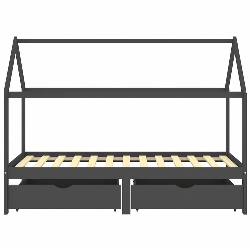 fiókos sötétszürke tömör fenyőfa gyerekágykeret 90 x 200 cm