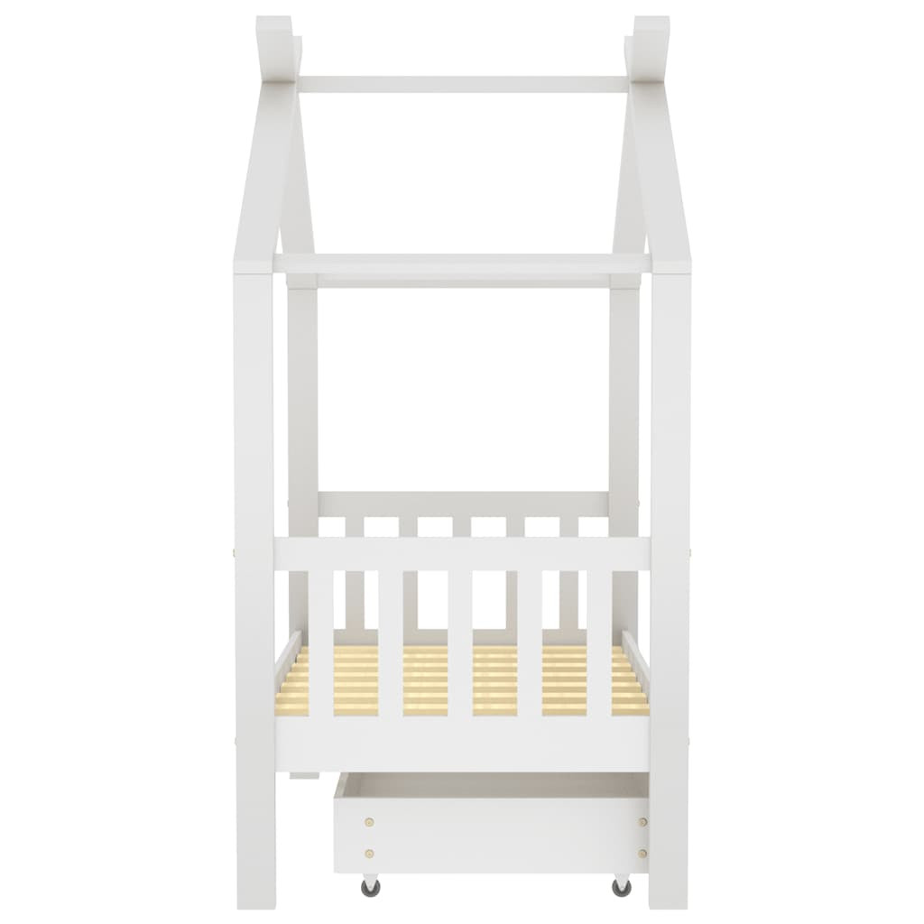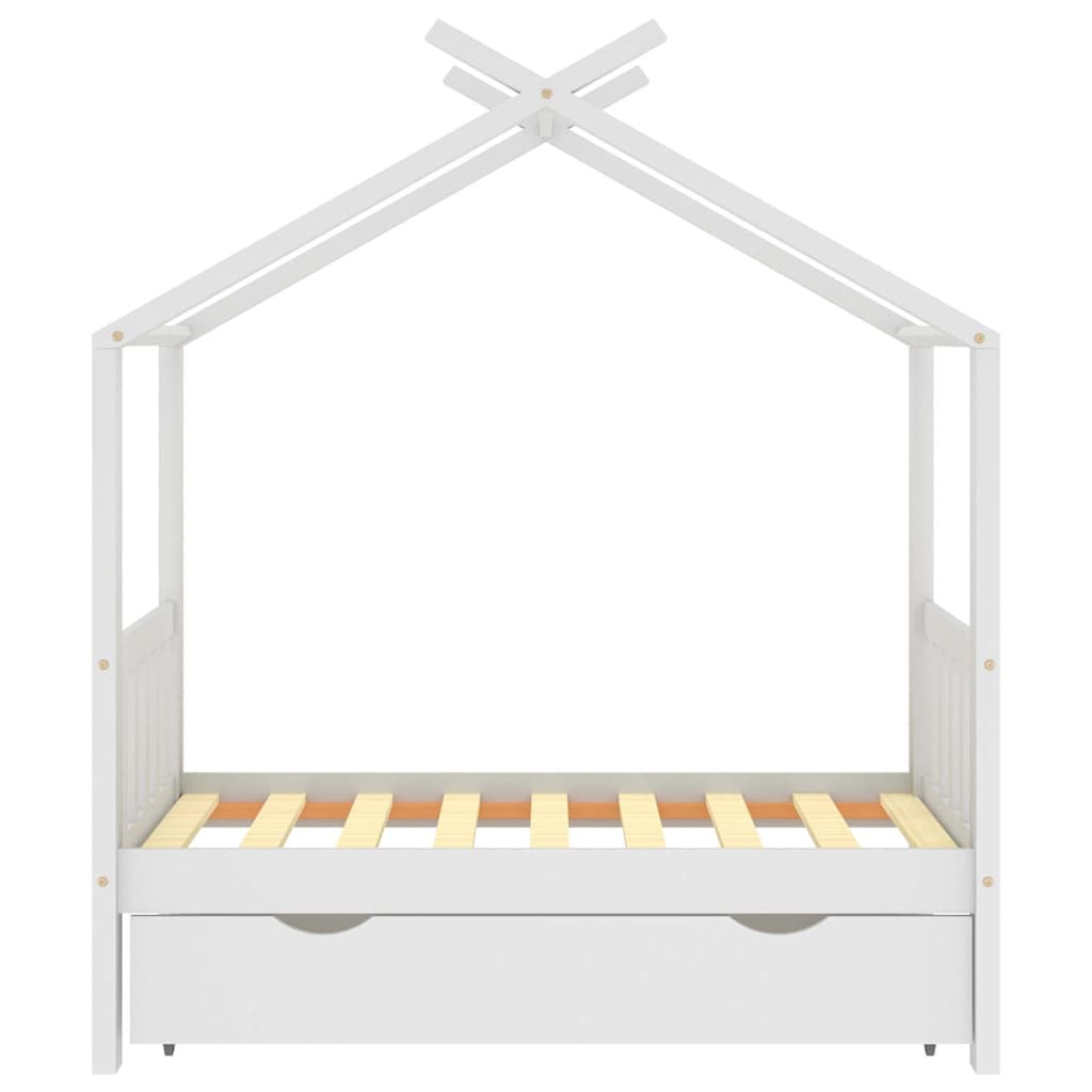 fehér tömör fenyőfa gyerekágykeret fiókkal 70 x 140 cm
