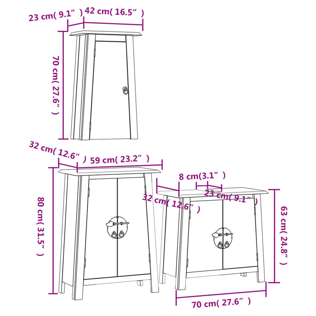 3 részes tömör fenyőfa fürdőszobai bútorszett