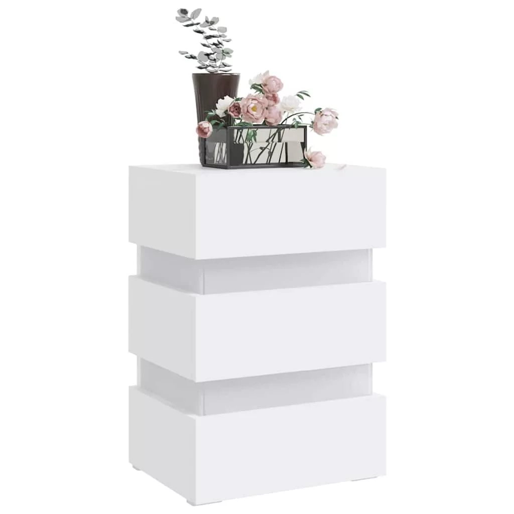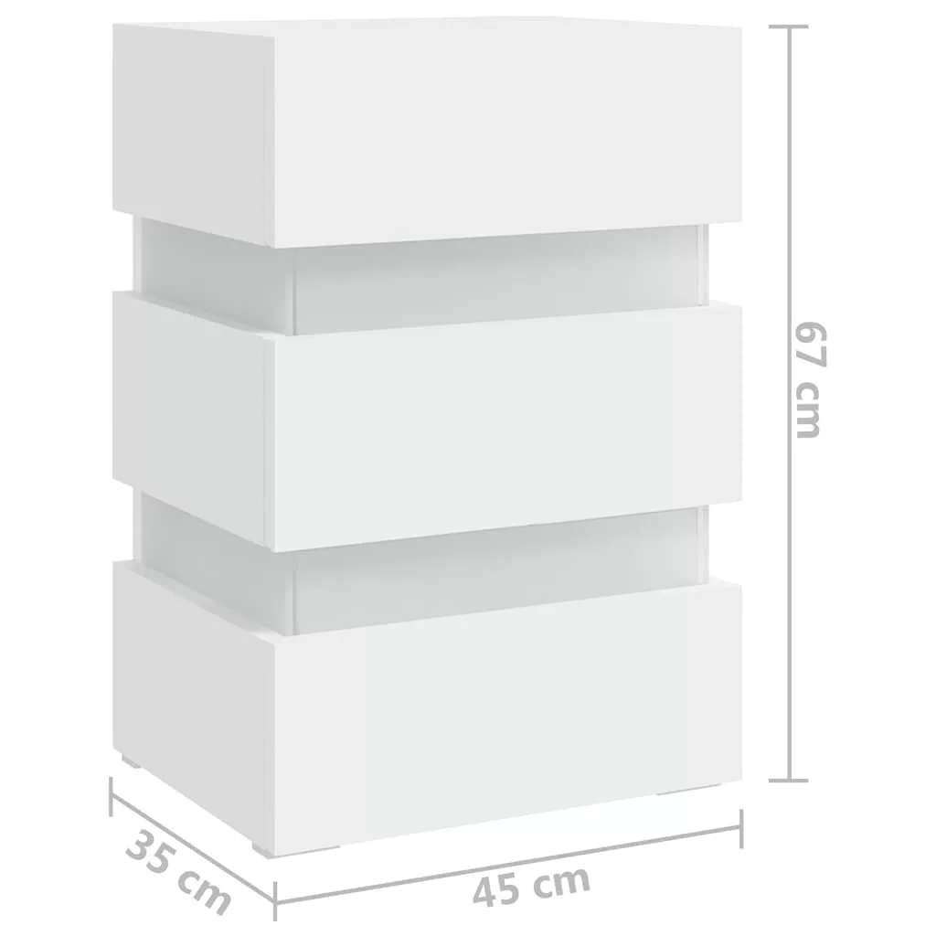 fehér szerelt fa LED-es éjjeliszekrény 45 x 35 x 67 cm