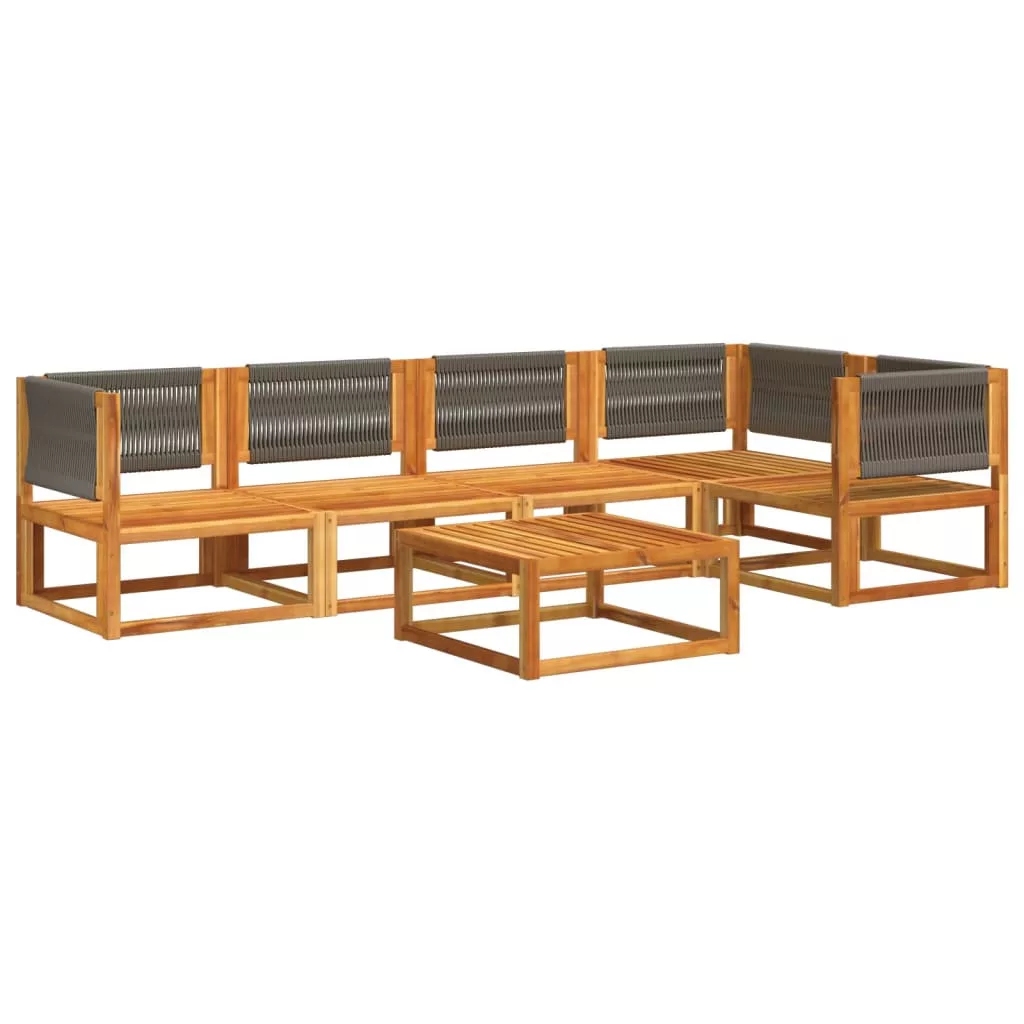 6 darabos kerti kanapégarnitúra párnákkal, akácfa és kötél