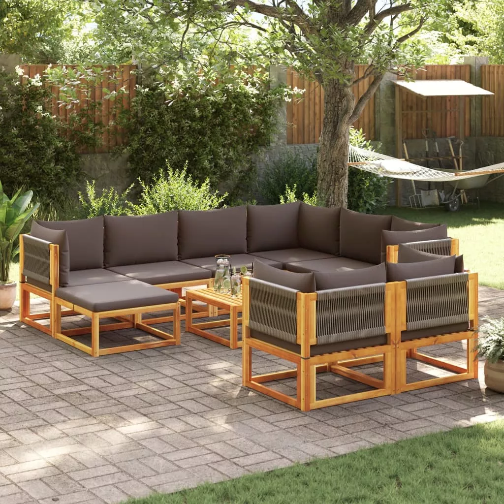 10 darabos kerti kanapégarnitúra párnákkal, akácfa és kötél