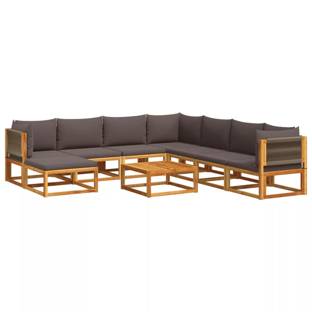 9 darabos kerti kanapégarnitúra párnákkal, akácfa és kötél