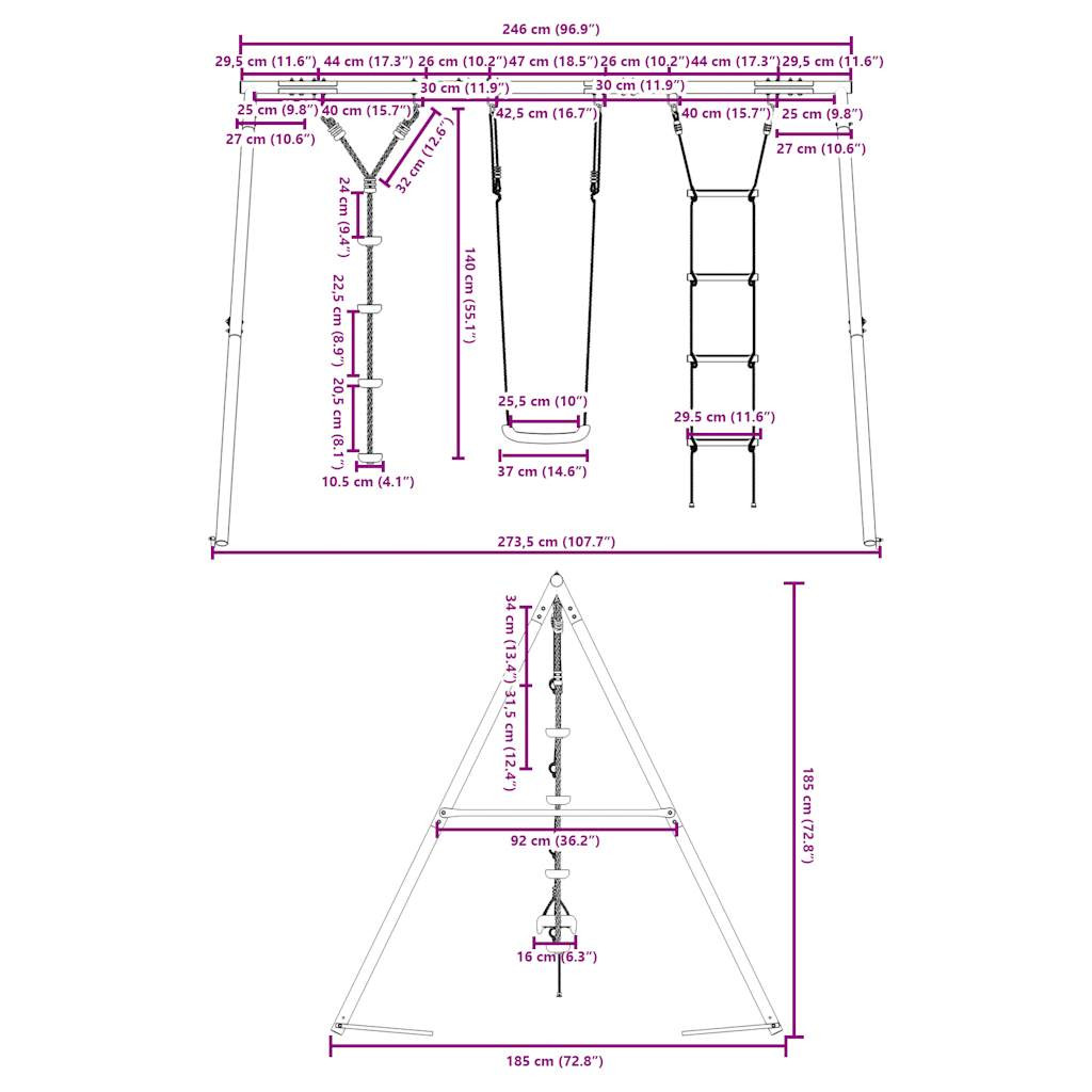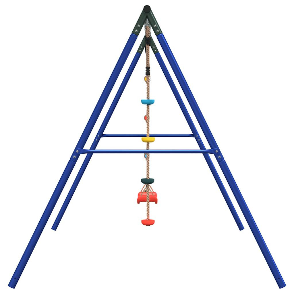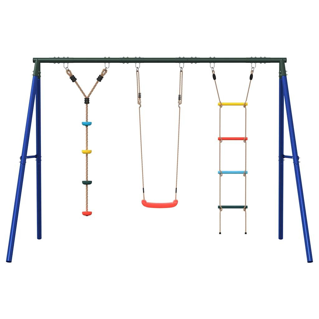 Varázsolja kertjét gyerekei játszóterévé ezzel a kültéri hinta szettel! Szórakoztató foglalkoztatóközpont: Ez a gyermekhintaszett 3 különböző játéklehetőséget tartalmaz hintaüléssel, tárcsákkal ellátott kötélhintával és mászólétrával. Így a gyerekek kedvükre hintázhatnak és mászhatnak.Nagy teherbírású fém váz: Ez a hintaváz festett acélcsövekből készült, amelyek rozsdaállók, rendkívül erősek, és ellenállnak a deformációnak, kiváló stabilitást és tartósságot biztosítva. Az A-alakú szerkezet erős támaszt nyújt, ingadozás nélkül.Állítható hintaülés: Ezt a kerti hintát úgy tervezték, hogy gyermekével együtt növekedjen, így kisgyermekek és növekvő gyerekek számára egyaránt alkalmas. A kötélhossz beállításával könnyedén alkalmazkodhat gyermeke változó igényeihez.Multifunkcionális szabadtéri játékok gyerekeknek: Ez a kerti hinta szett segít a gyerekeknek fejleszteni egyensúlyukat, koordinációjukat, mozgékonyságukat, erejüket, és állóképességüket, miközben változatos játék- és testmozgást biztosít.Széleskörű felhasználás: Ez a hintaváz különféle helyeken helyezhető el, például kertben, hátsó udvaron, óvodában, játszótéren stb. Jó tudni:A biztonság kedvéért ügyeljen arra, hogy a hinta egyszerre csak egy gyermek számára legyen elérhető. Figyelem. 3 év alatti gyermekek számára nem alkalmas. Csak háztartási használatra.