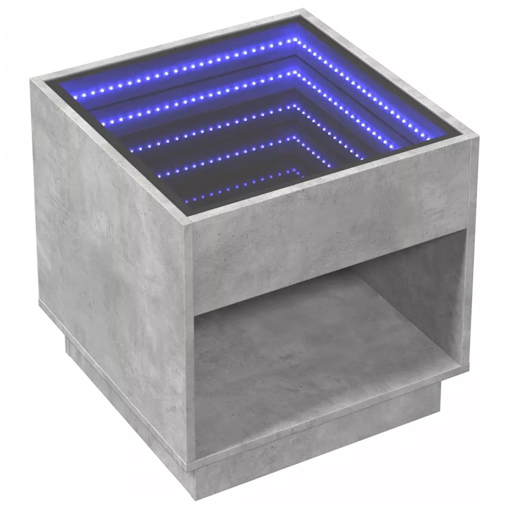 betonszürke végtelen hatású LED-es éjjeliszekrény 50x50x50 cm