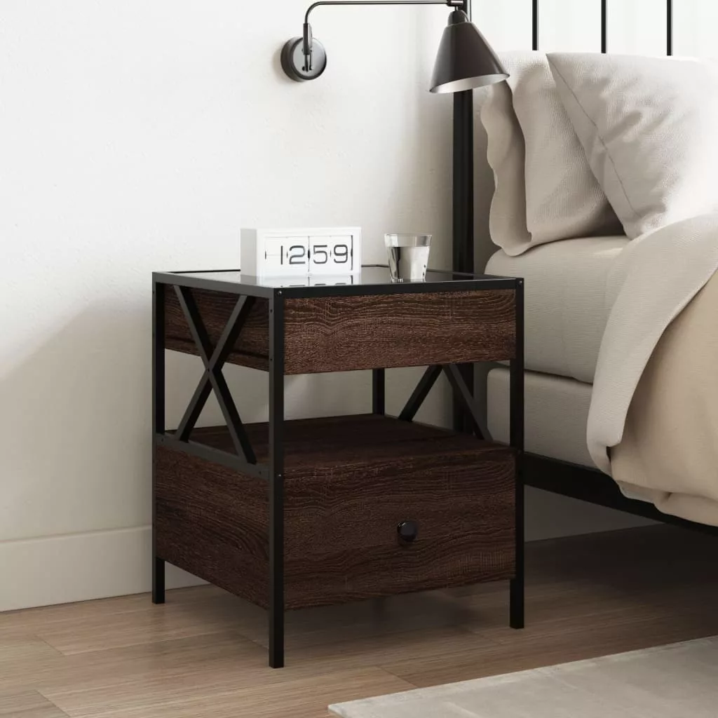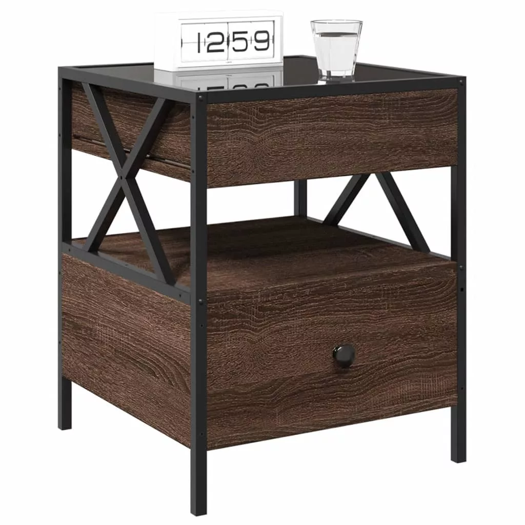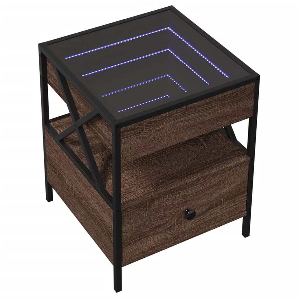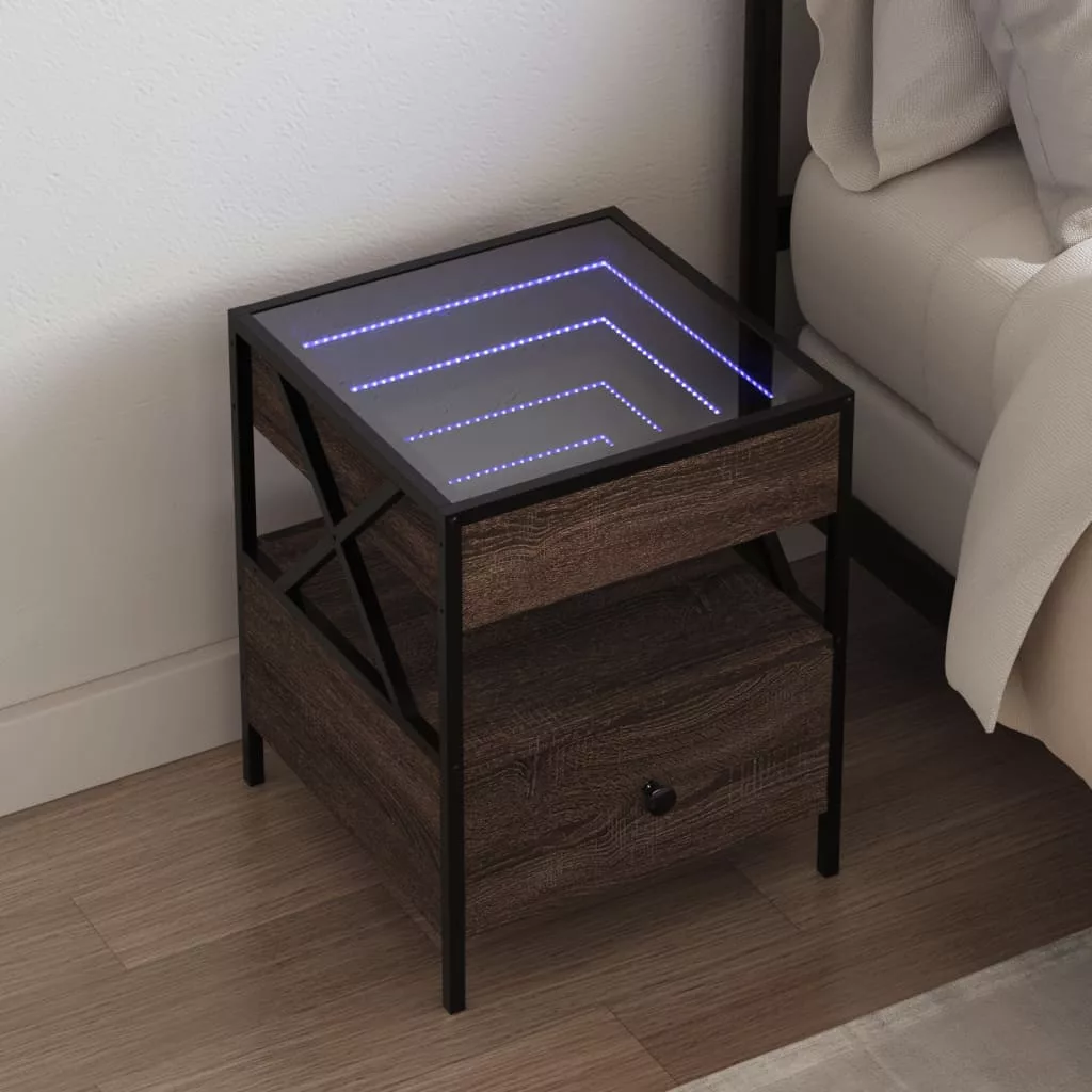 barna tölgy végtelen hatású LED-es éjjeliszekrény 40x40x51 cm