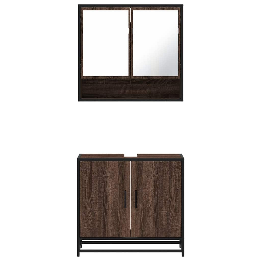 2 részes barna tölgy színű szerelt fa fürdőszobai bútorszett