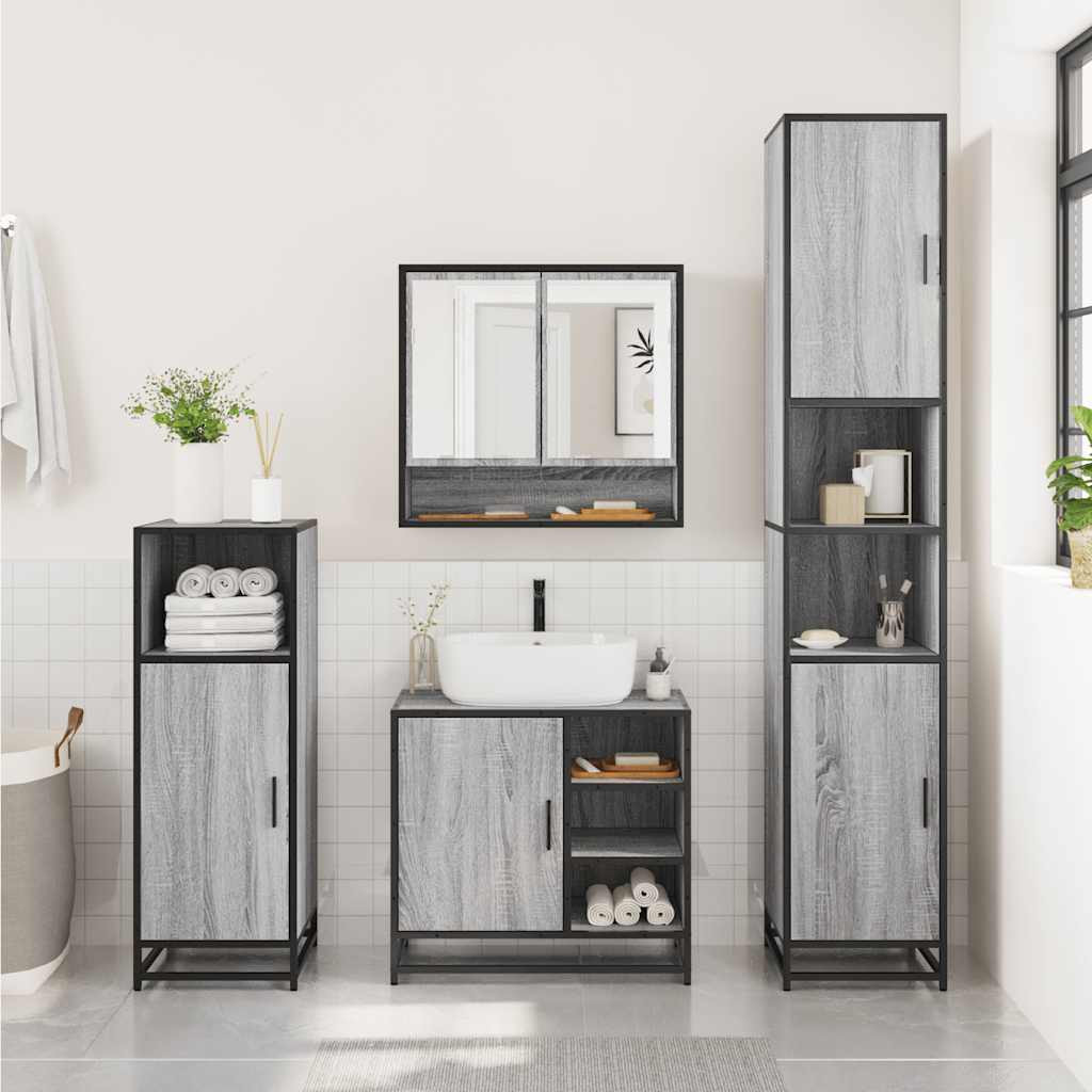 2 részes szürke sonoma színű szerelt fa fürdőszobai bútorszett