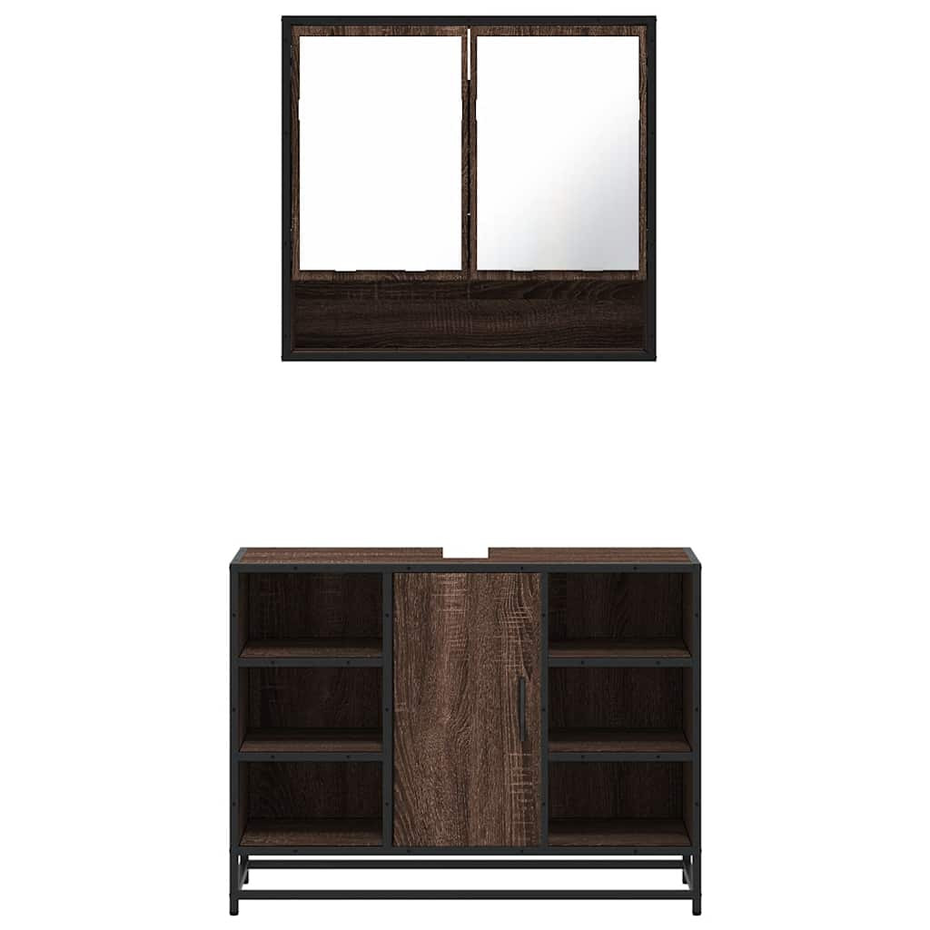 2 részes barna tölgy színű szerelt fa fürdőszobai bútorszett