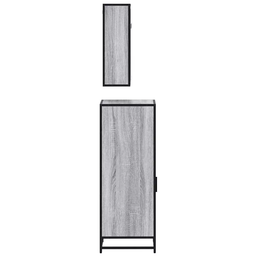 3 részes szürke sonoma színű szerelt fa fürdőszobai bútorszett